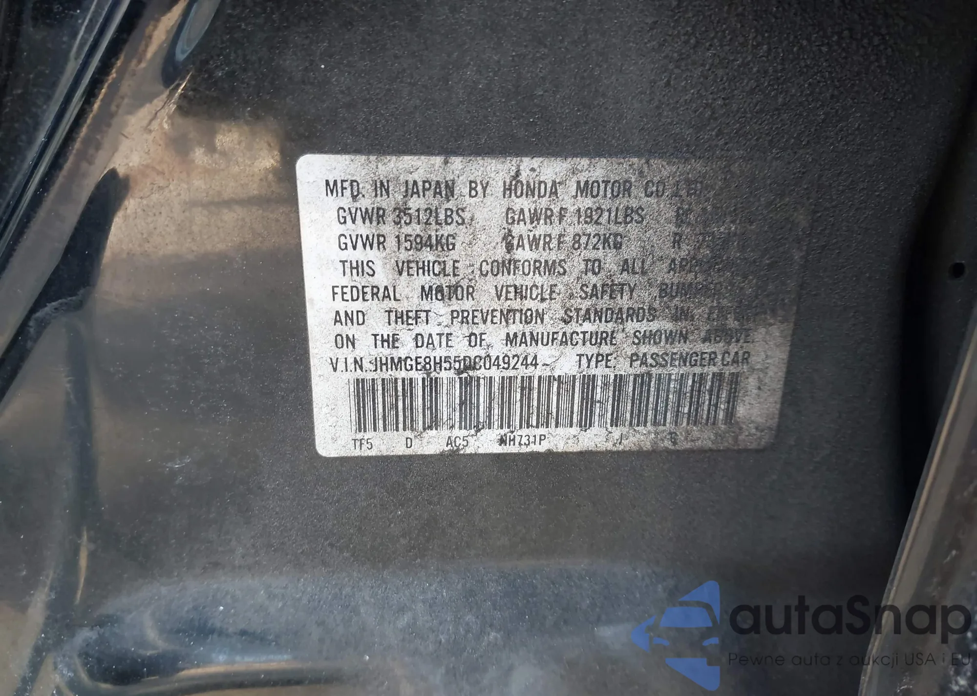 • VIN JHMGE8H55DC049244