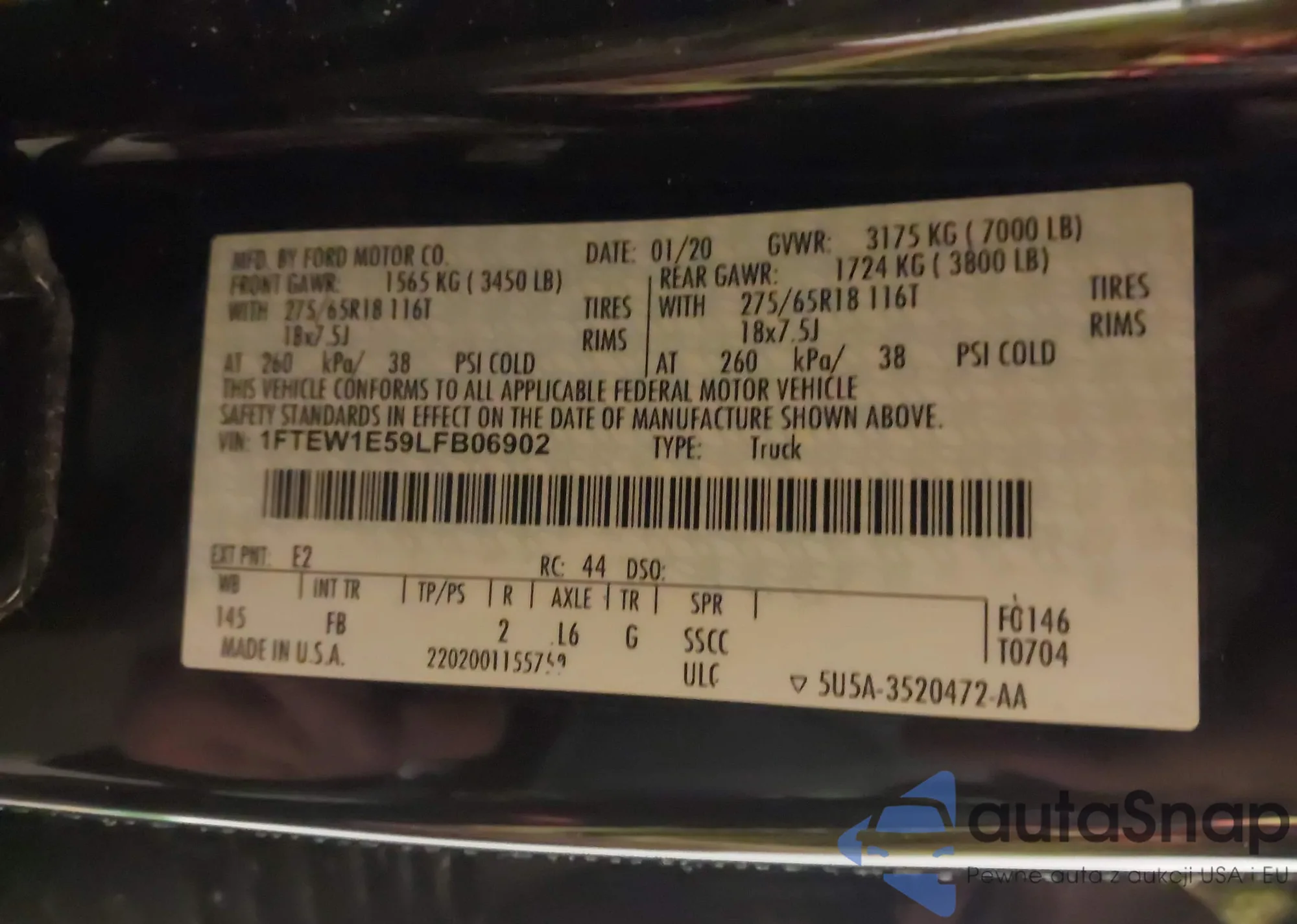 LOT: 44273549 VIN: 1FTEW1E59LFB06902