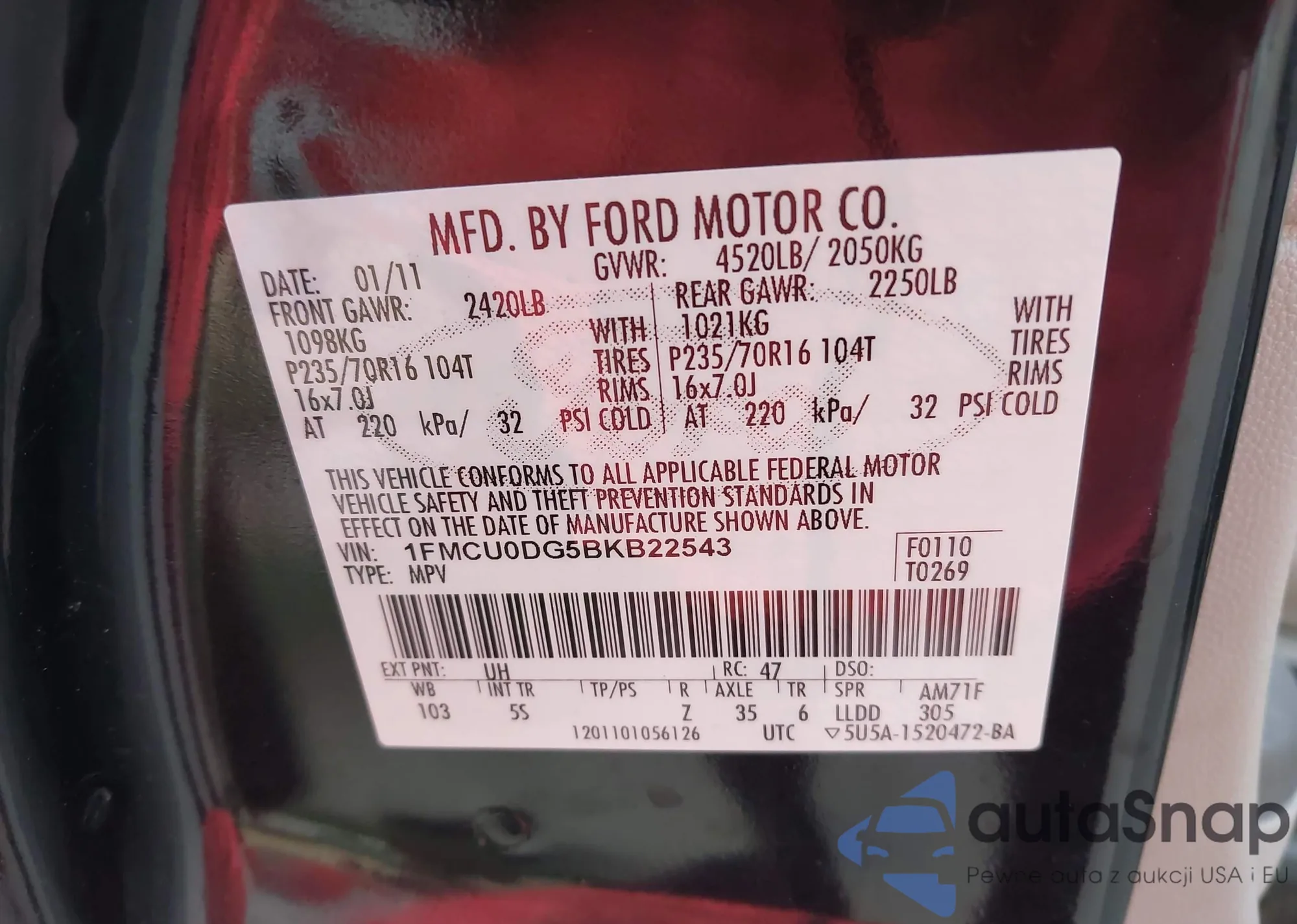• VIN 5J6TF2H50AL010660