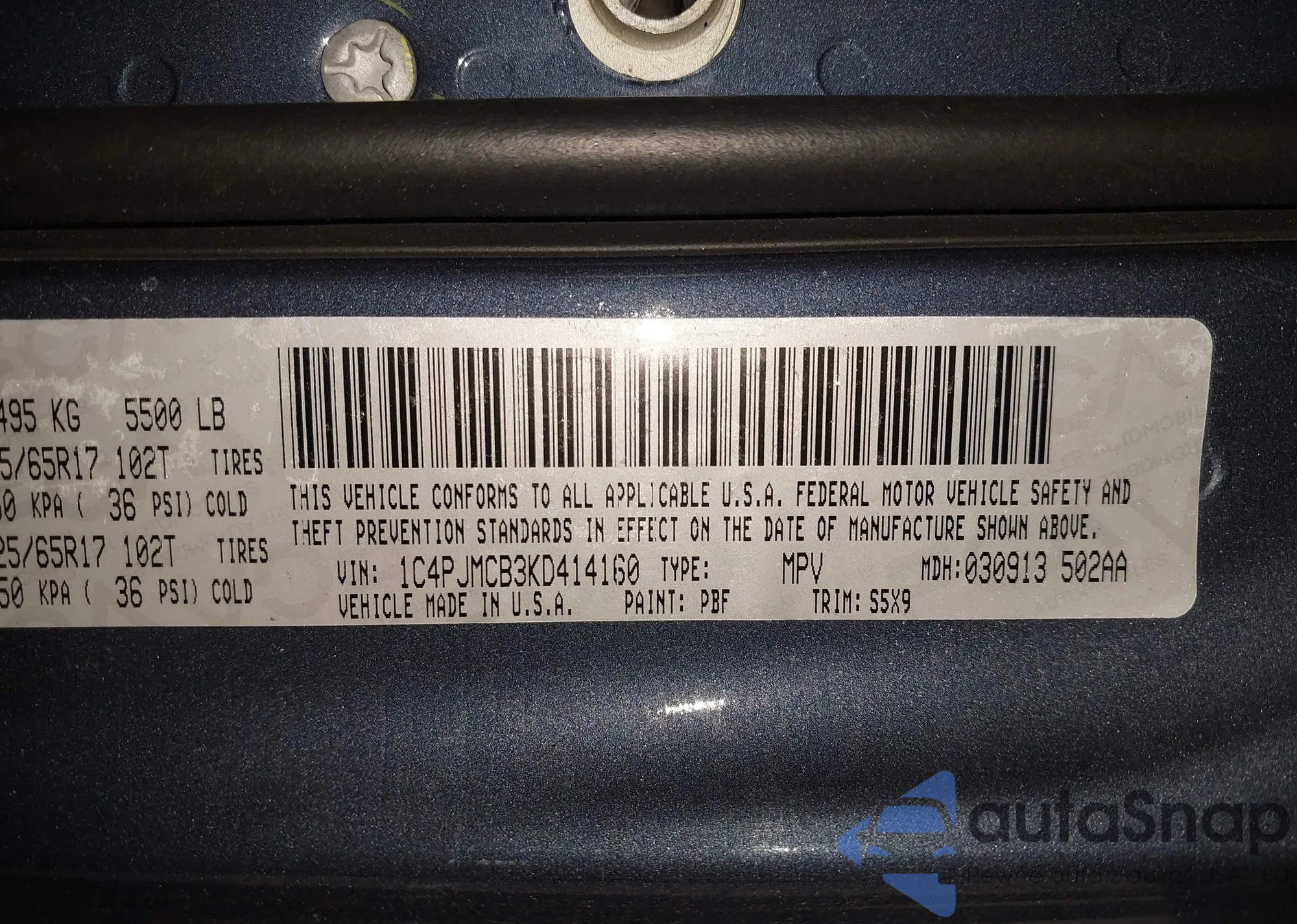 • VIN 1C4PJMCB3KD414160