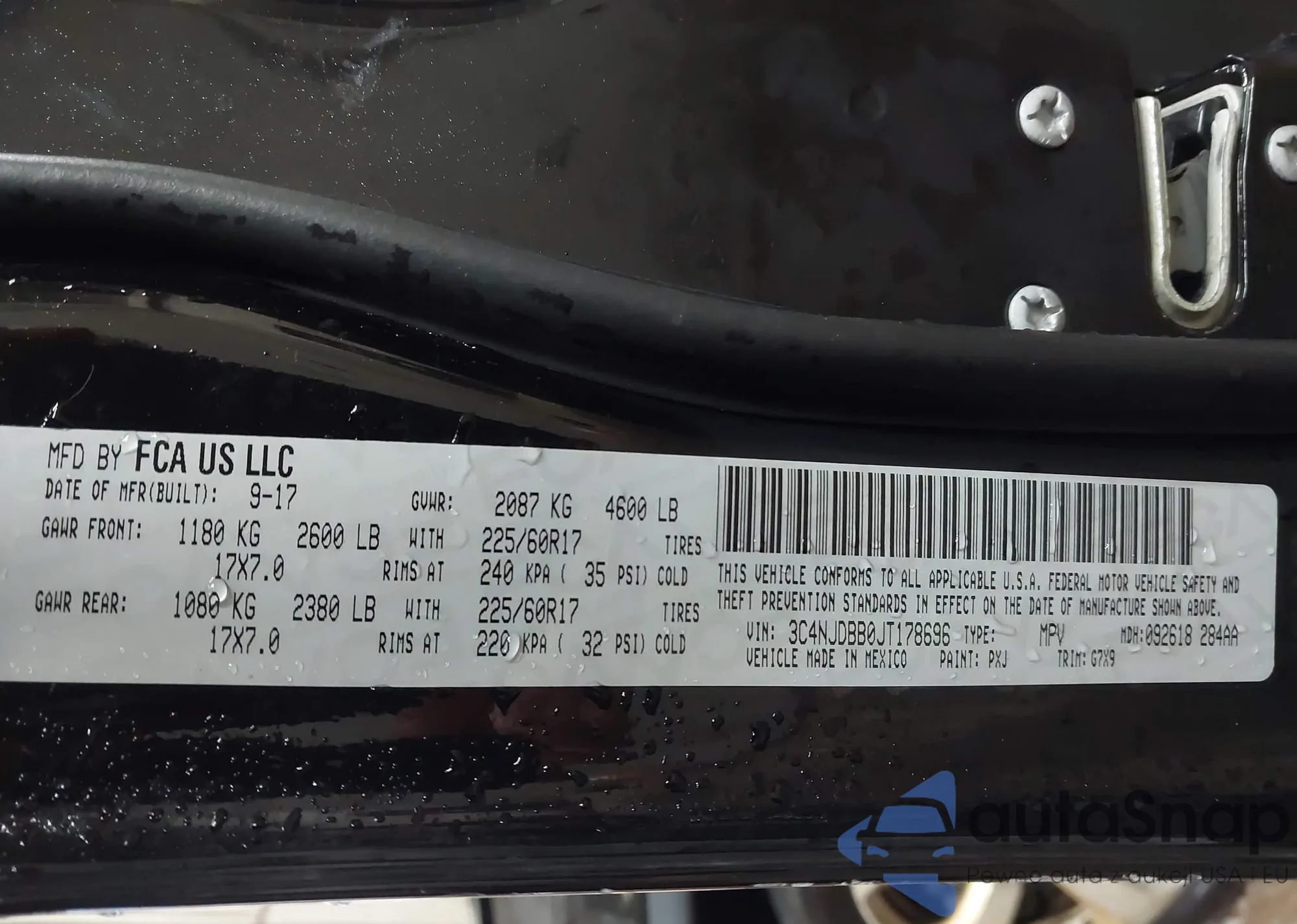 • VIN 3C4NJDBB0JT178696