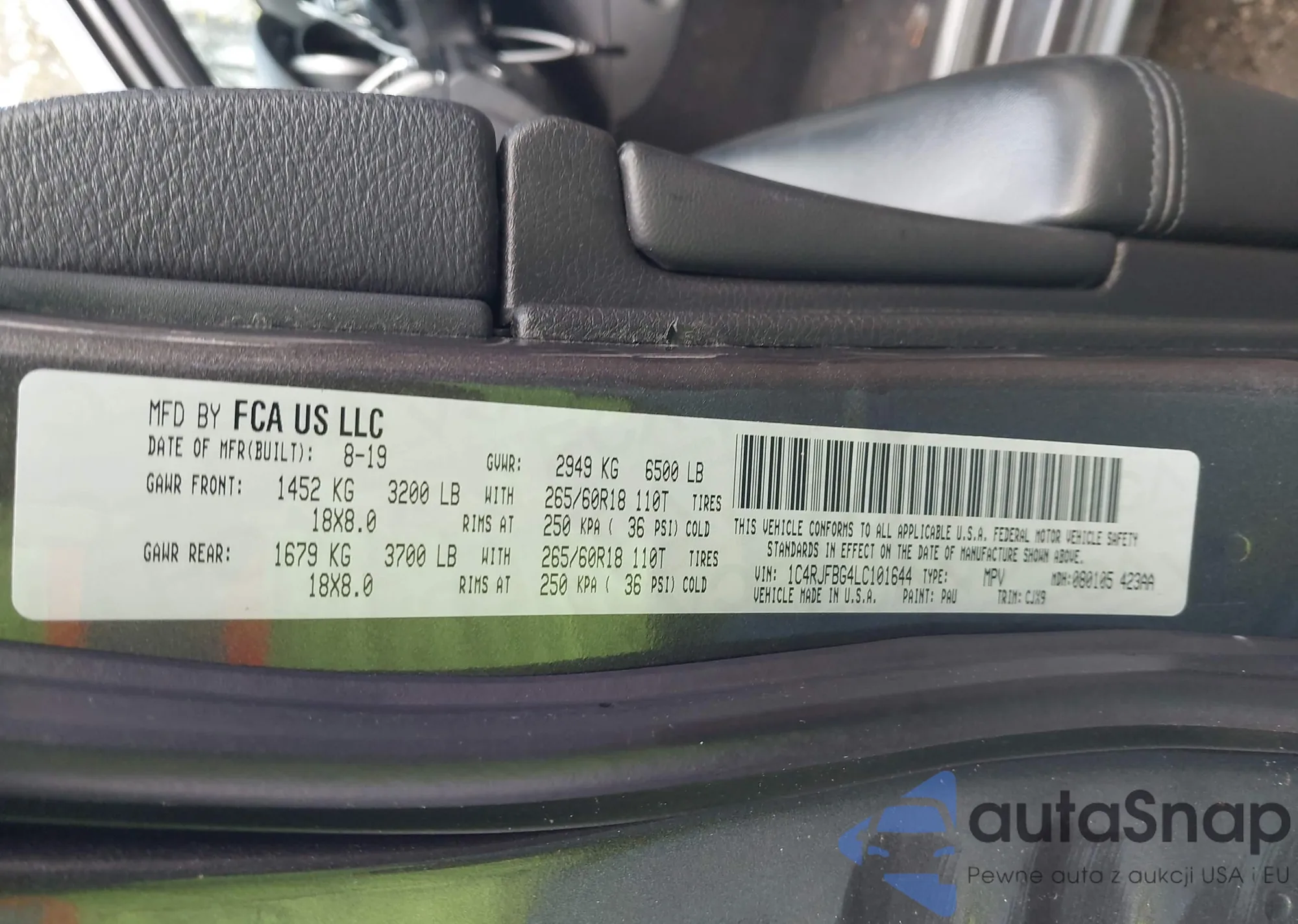 • VIN 1C4RJFBG4LC101644