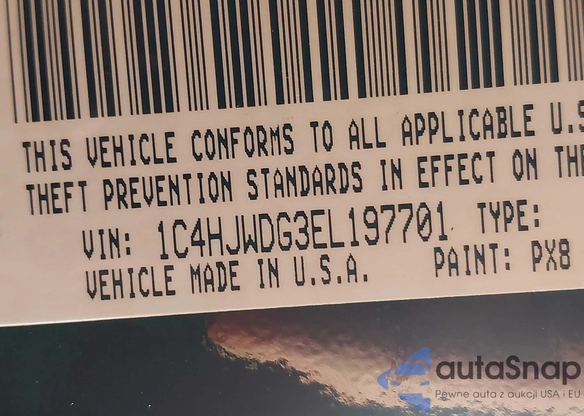 • VIN 1C4HJWDG3EL197701