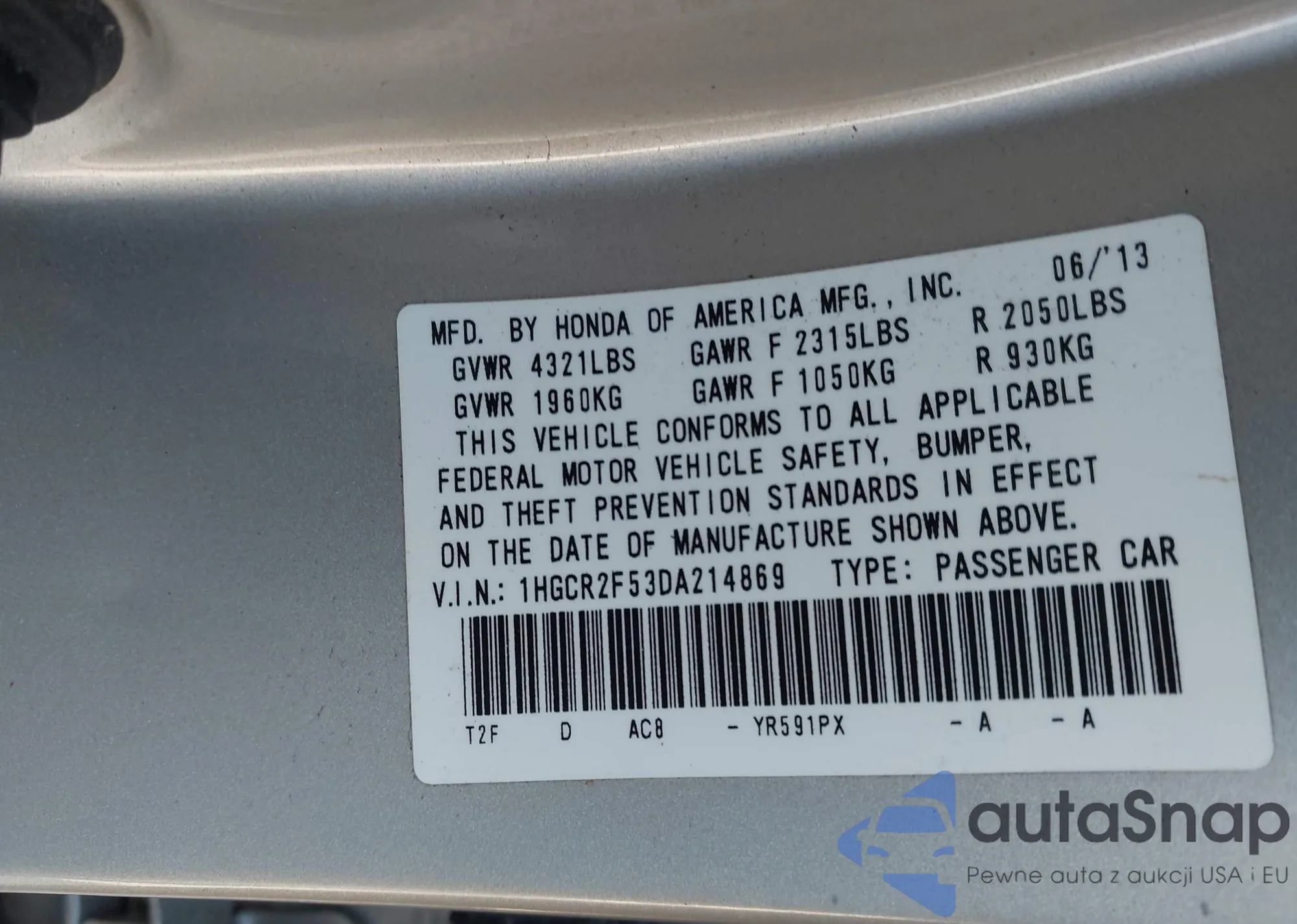 • VIN 1HGCR2F53DA214869