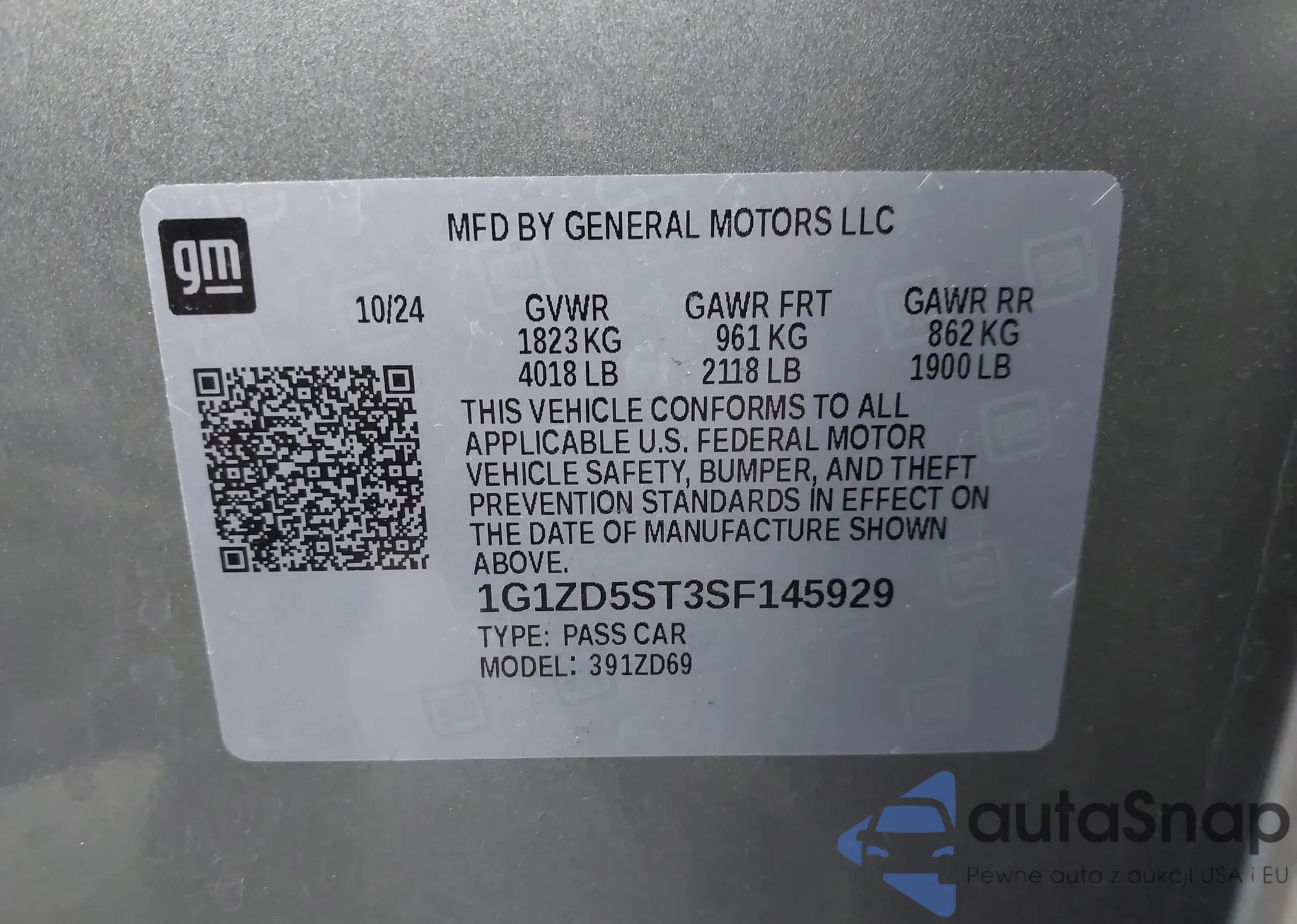LOT: 44503939 VIN: 1G1ZD5ST3SF145929