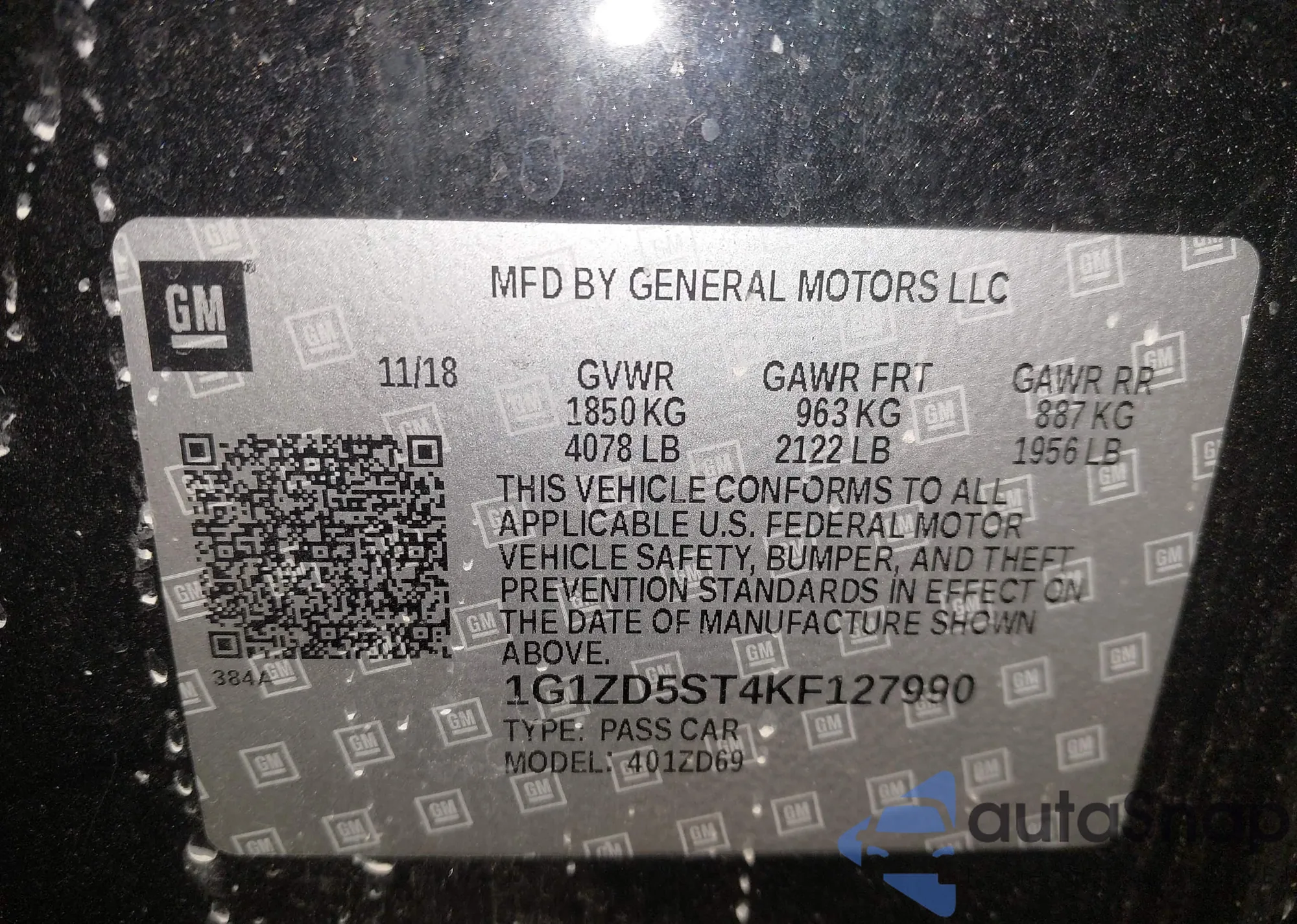 • VIN 1G1ZD5ST4KF127990