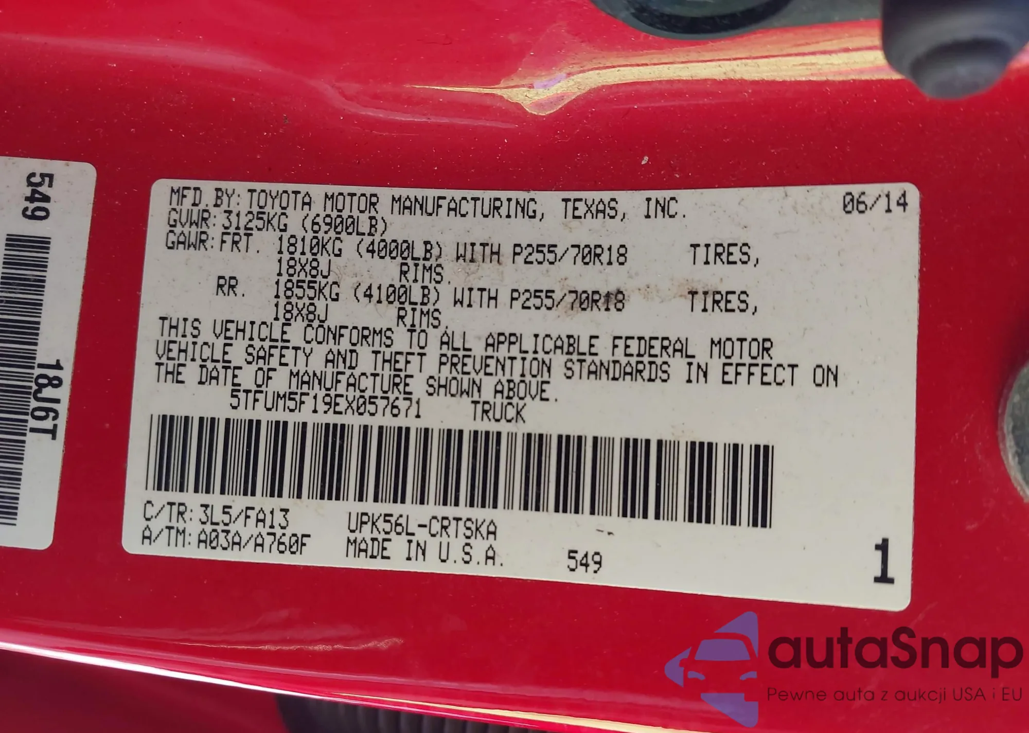 LOT: 44214405 VIN: 5TFUM5F19EX057671