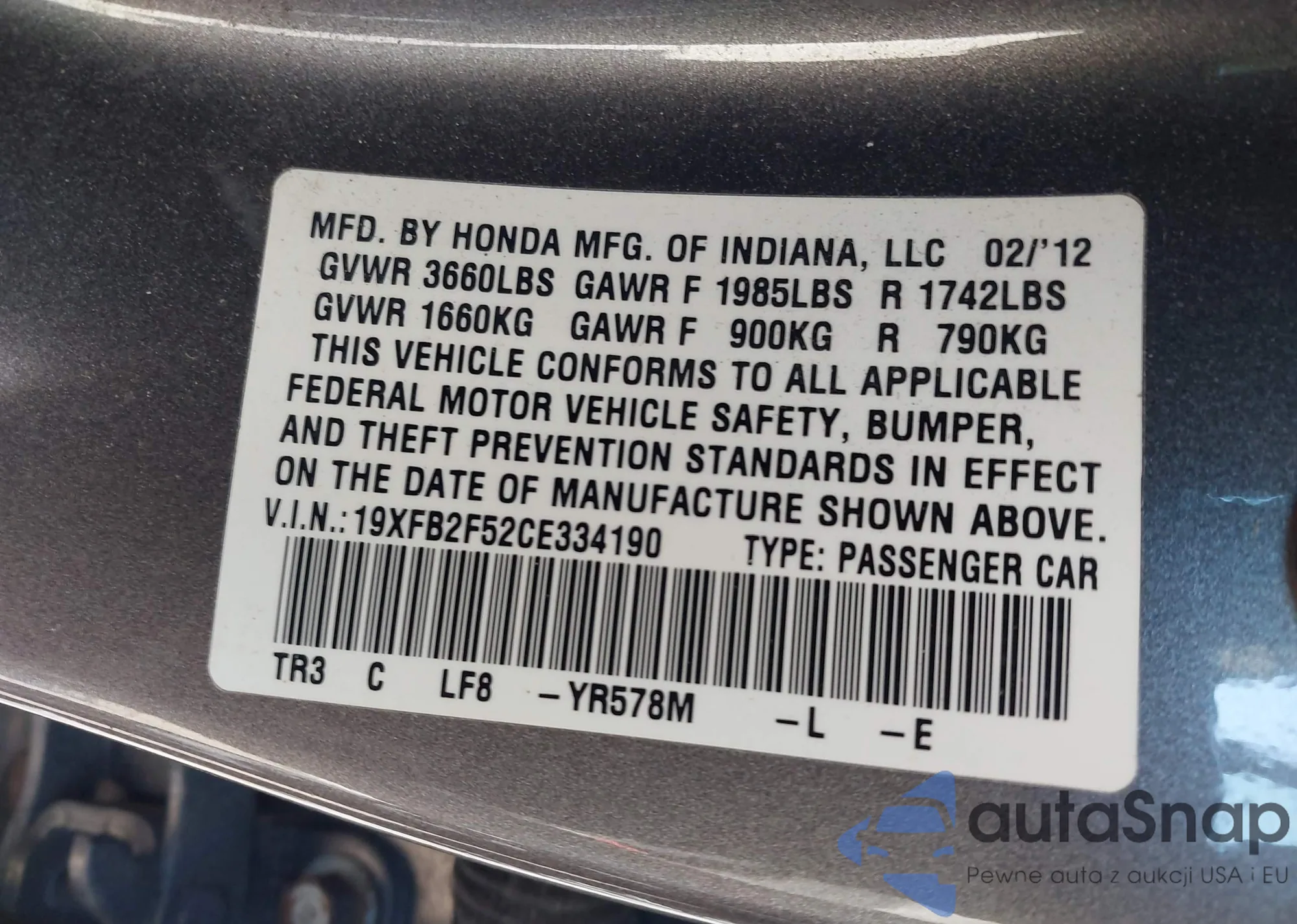 • VIN 5FNYF6H28NB012206