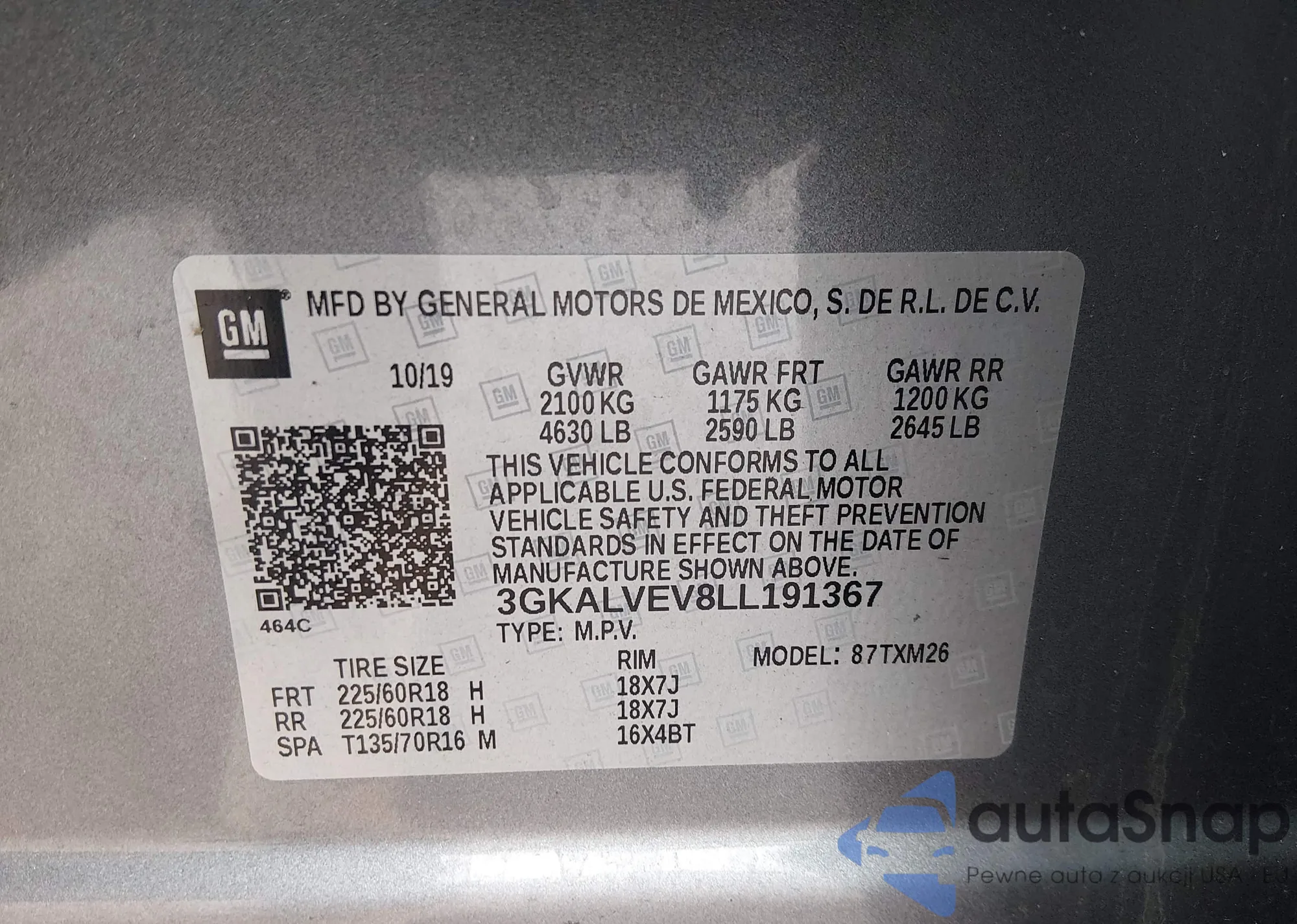 • VIN 3GKALVEV8LL191367