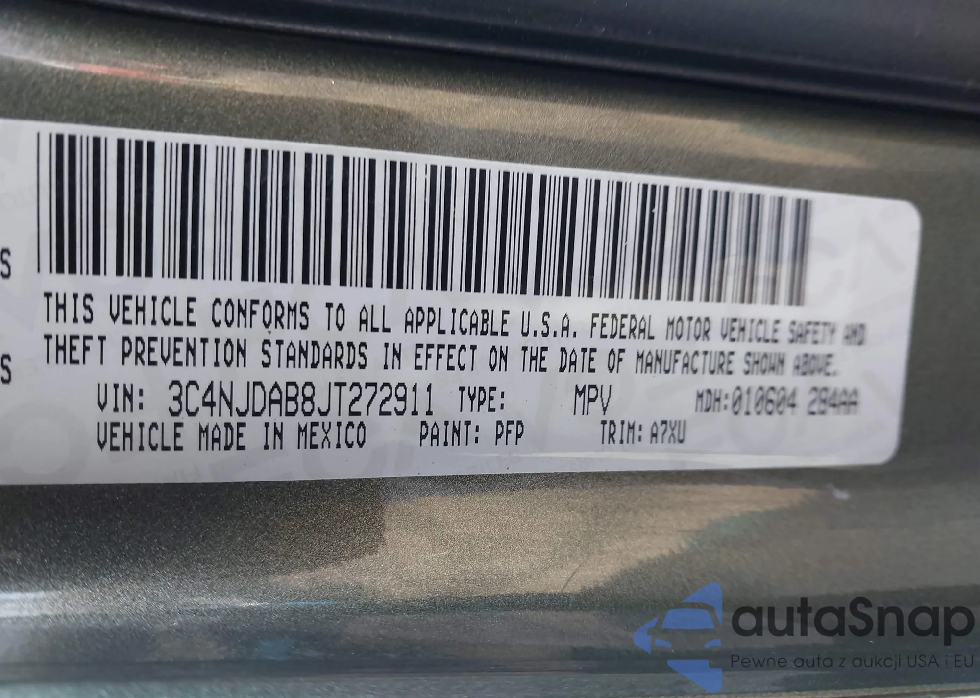 • VIN 3C4NJDAB8JT272911