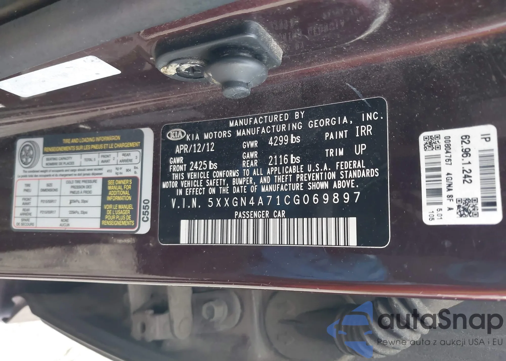 LOT: 44269584 VIN: 5XXGN4A71CG069897