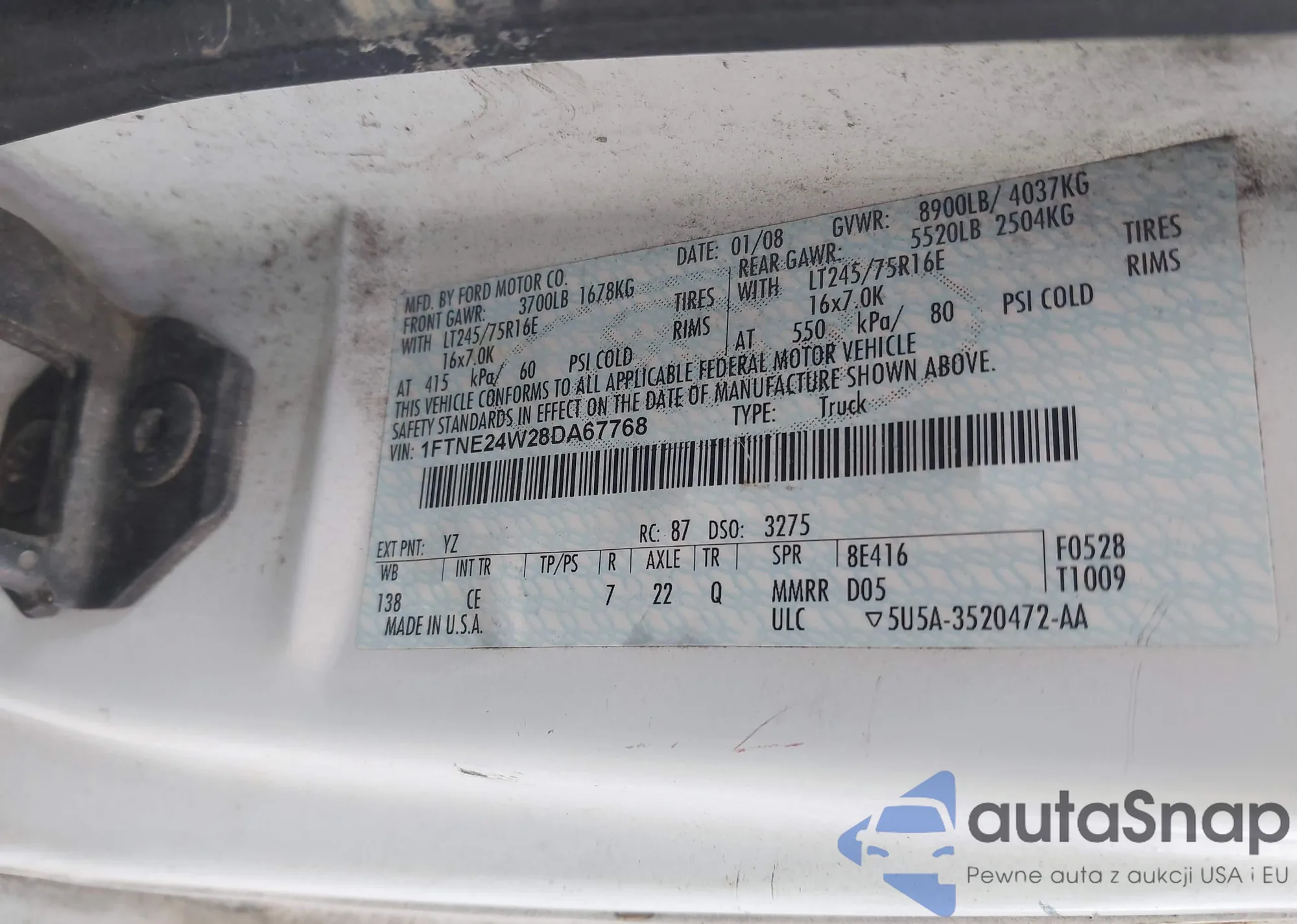 • VIN 1FTNE24W28DA67768