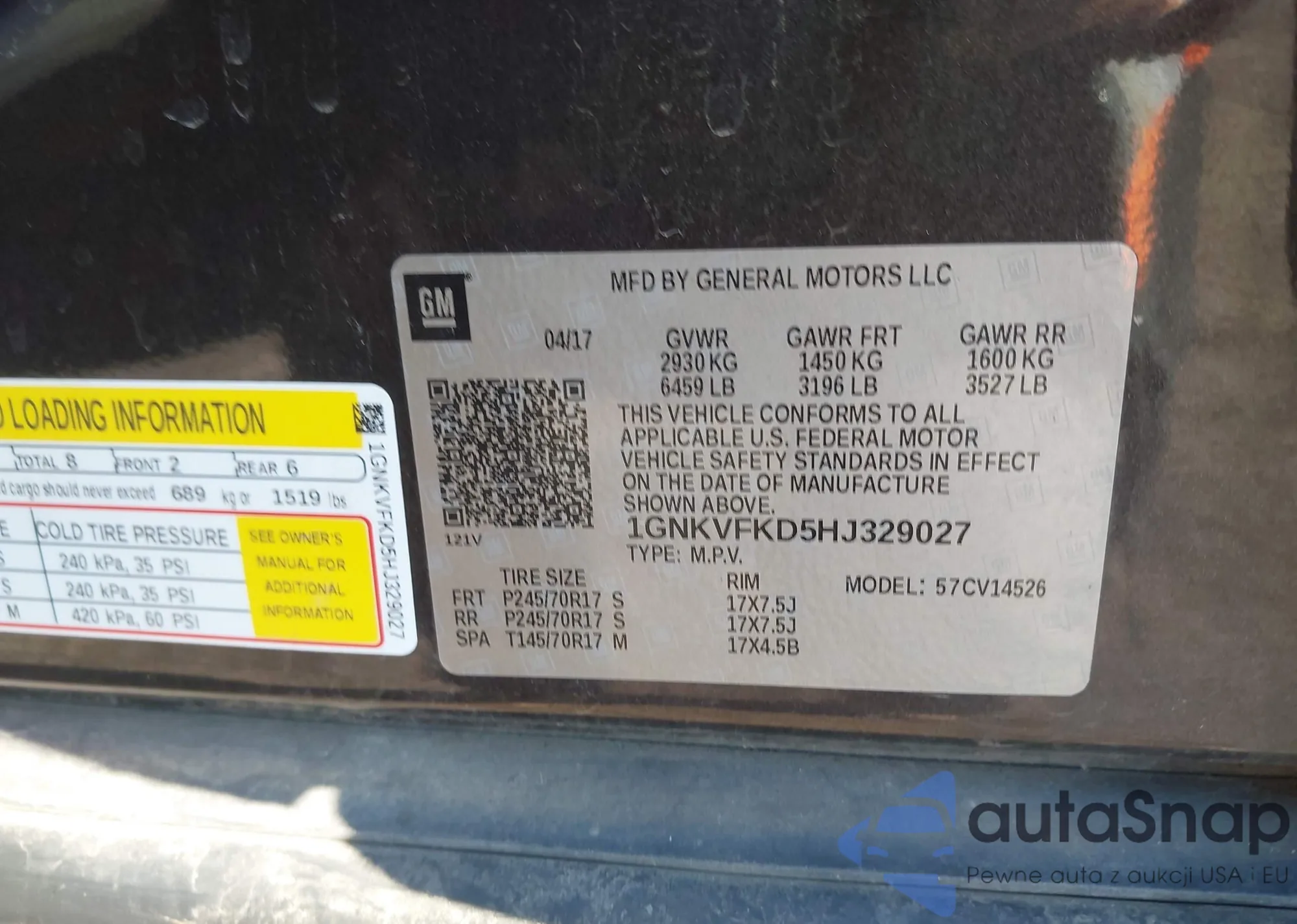 • VIN 1GNKVFKD5HJ329027