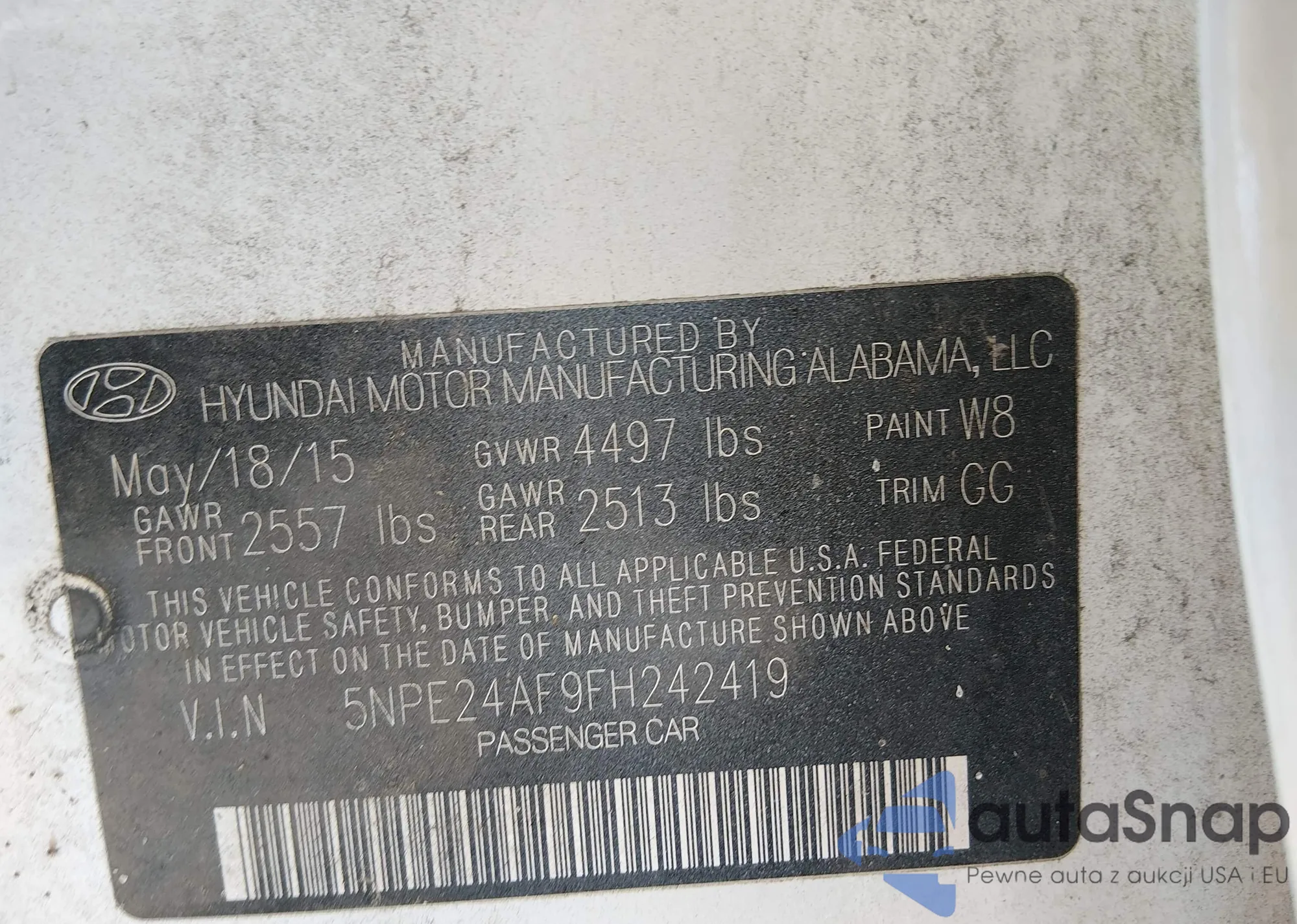 • VIN 5NPE24AF9FH242419