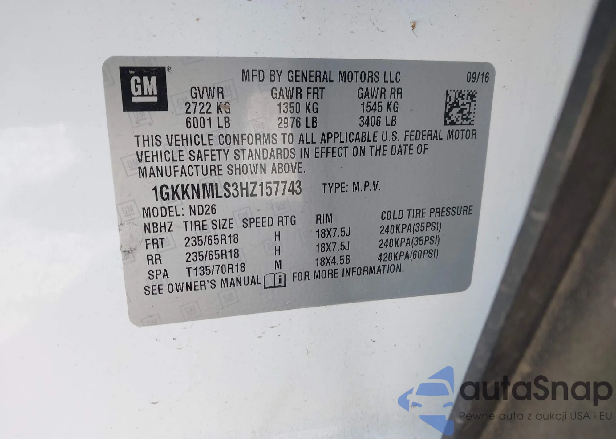 LOT: 44325866 VIN: 1GKKNULS7LZ237300