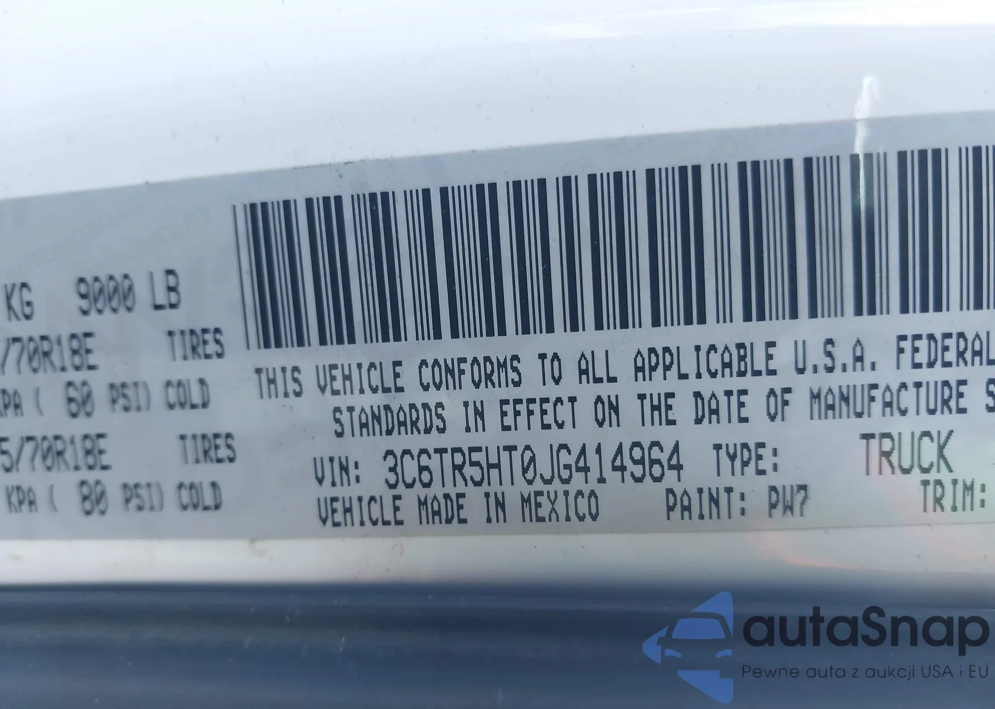 • VIN 3C6TR5HT0JG414964