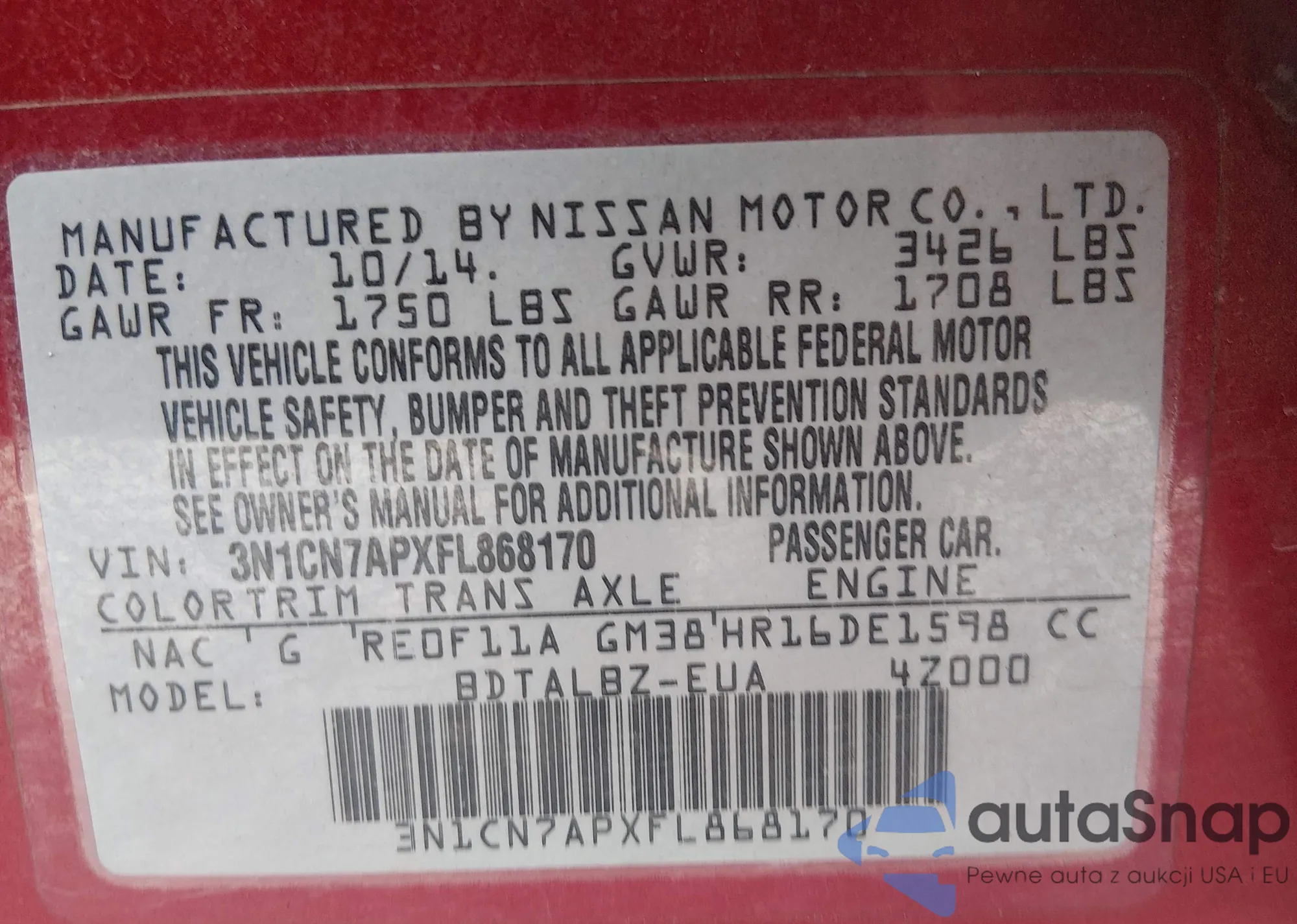 • VIN 3N1CN7APXFL868170