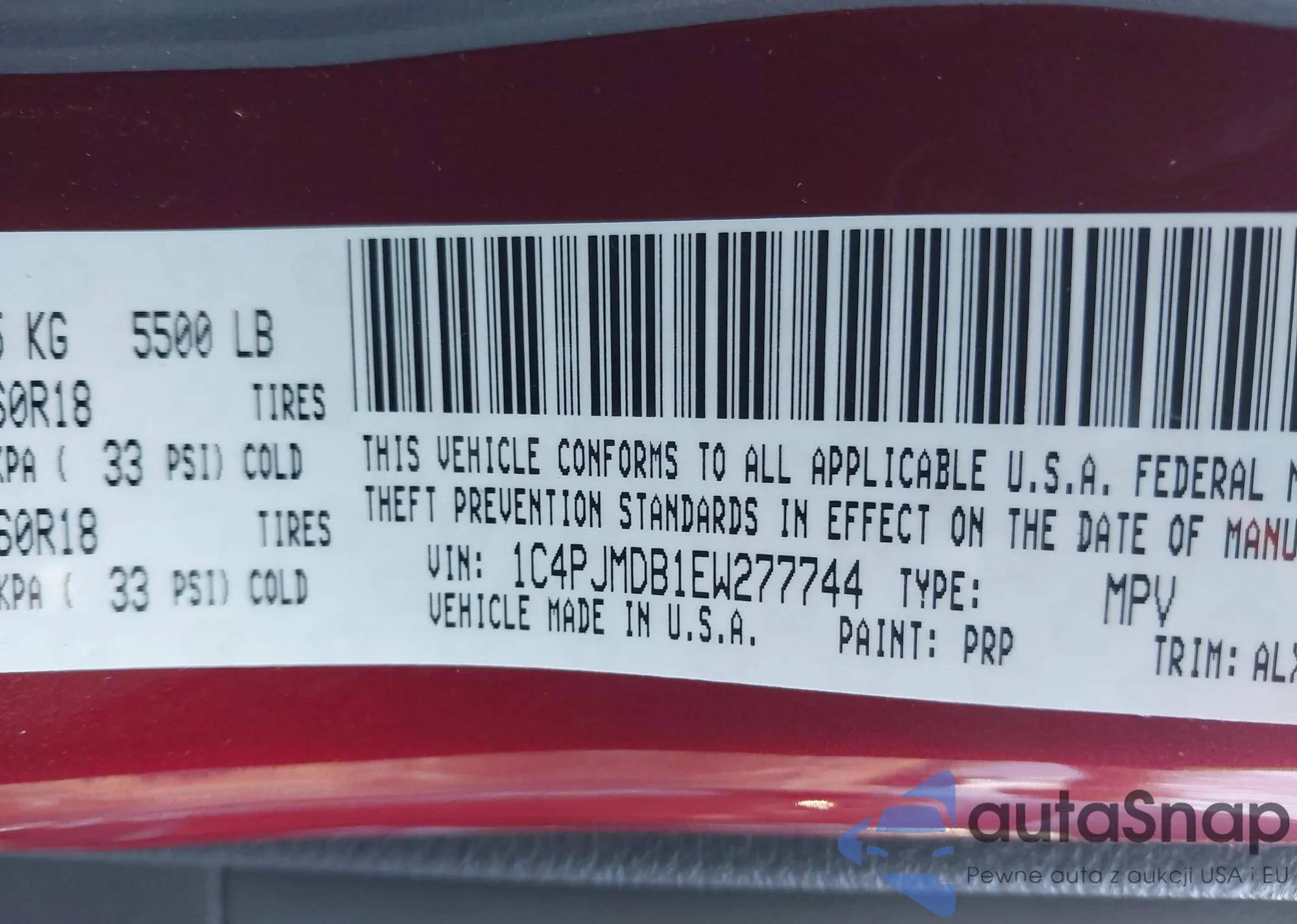 • VIN 1C4PJMDB1EW277744