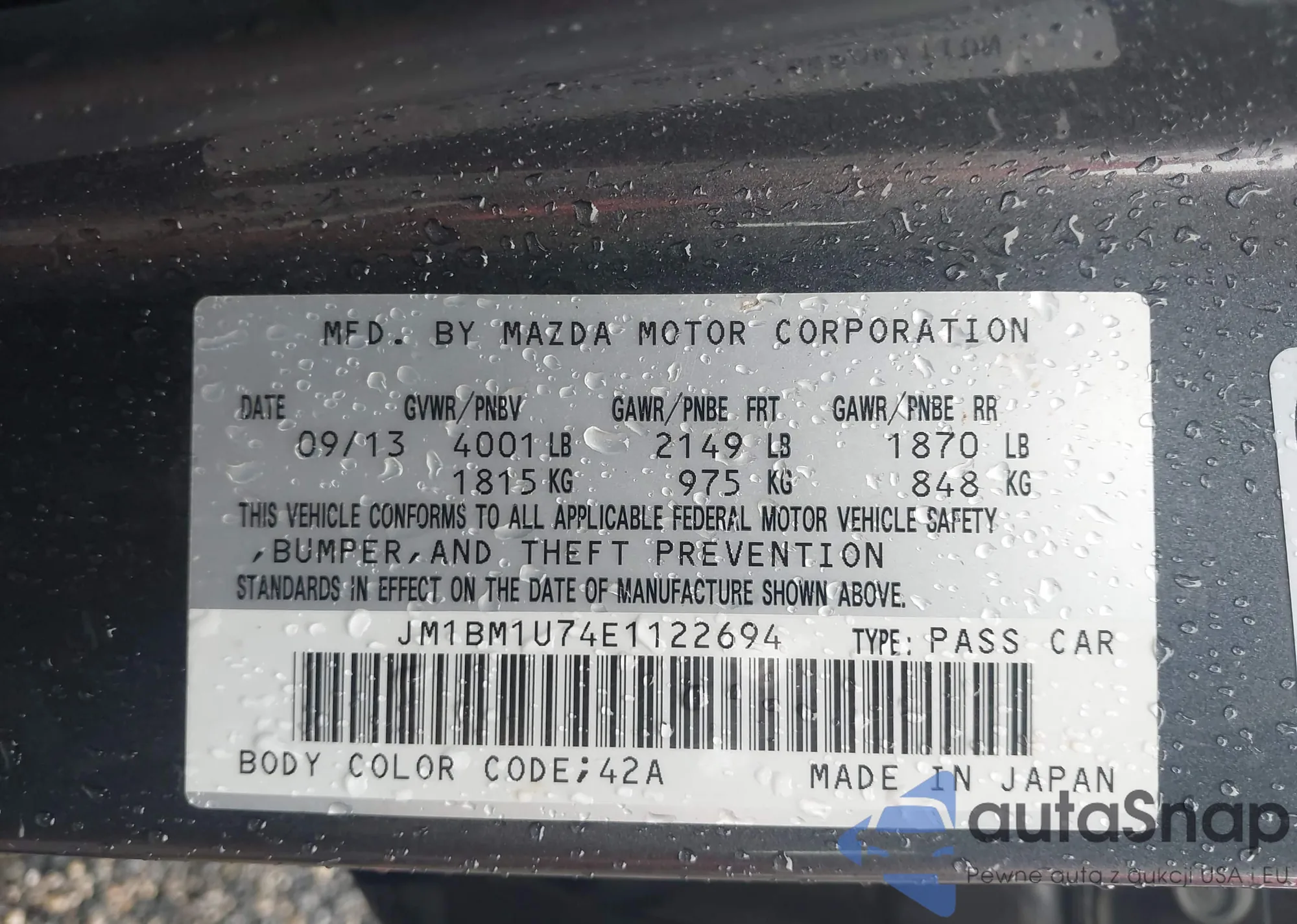 LOT: 44538457 VIN: JM1BM1U74E1122694
