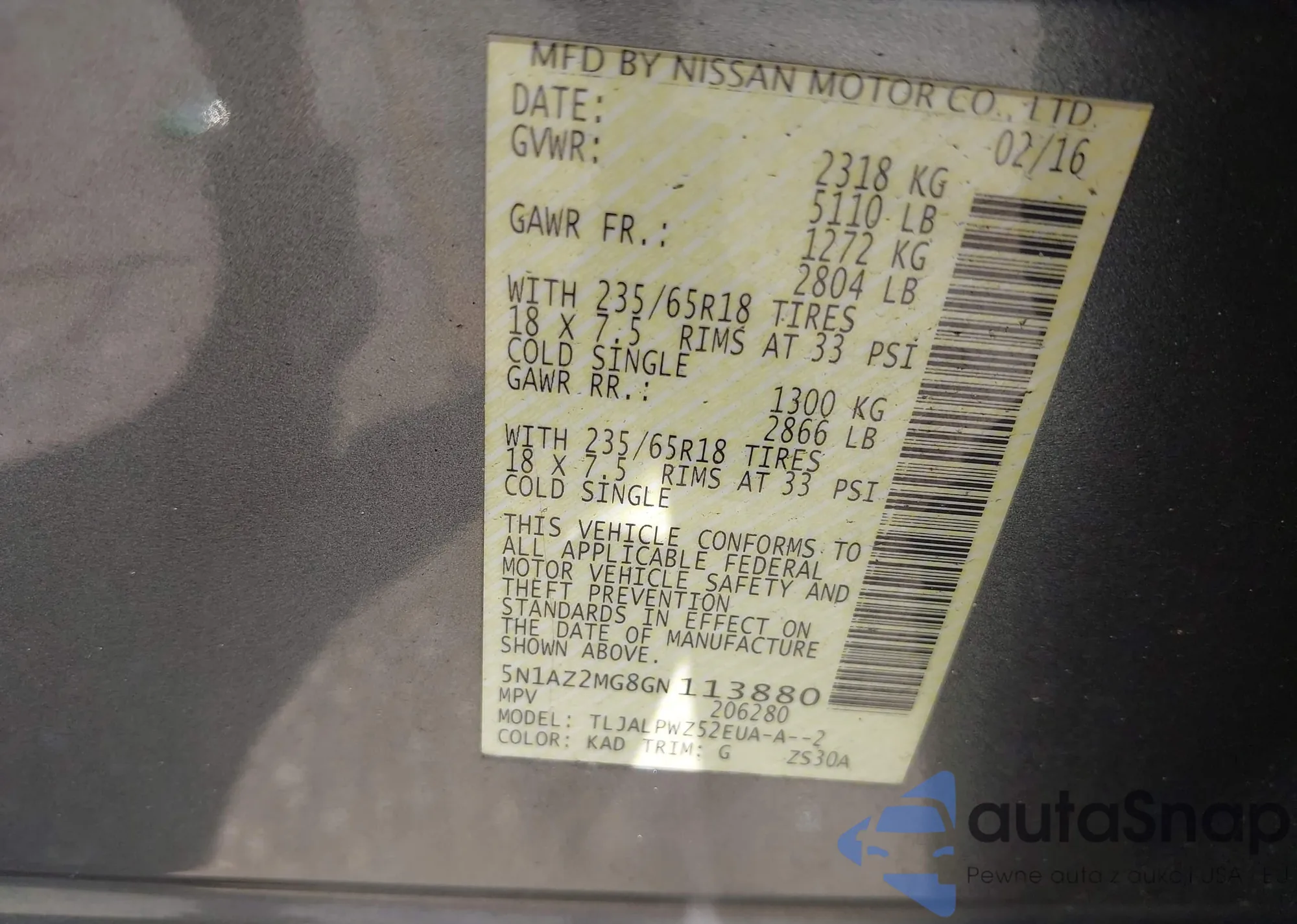 • VIN 5N1AZ2MG8GN113880