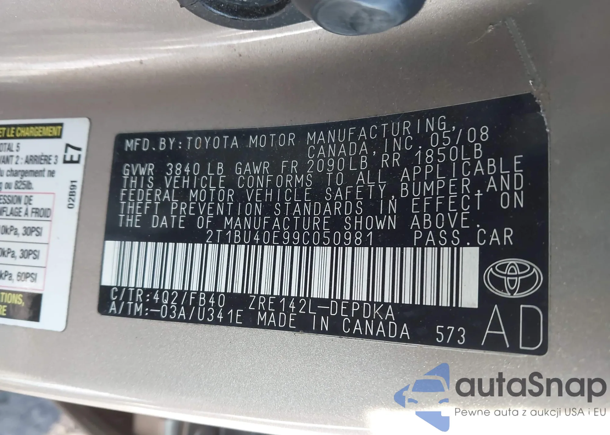 LOT: 44143829 VIN: 5TEUU42N17Z401007