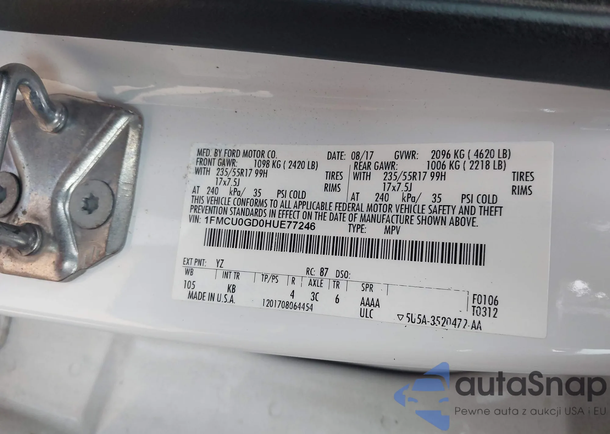LOT: 43892965 VIN: 1FMCU0GD0HUE77246