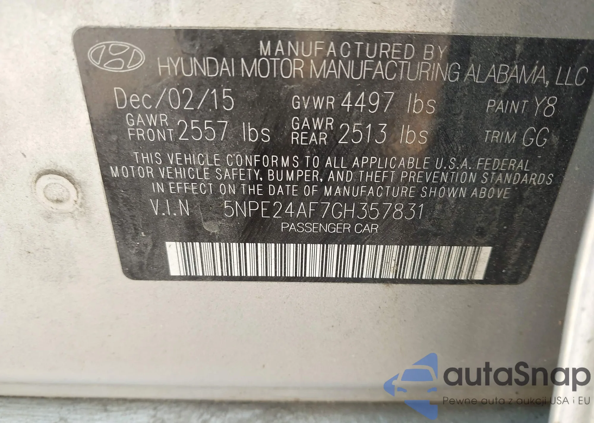 • VIN 5NPE24AF7GH357831