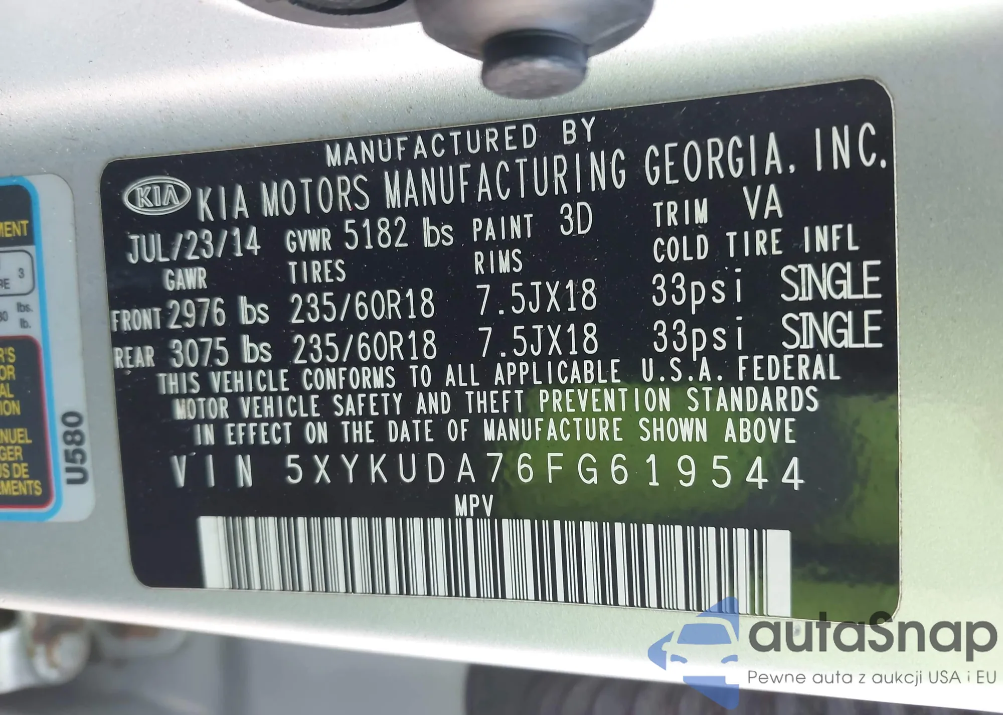 • VIN 5XYKUDA76FG619544