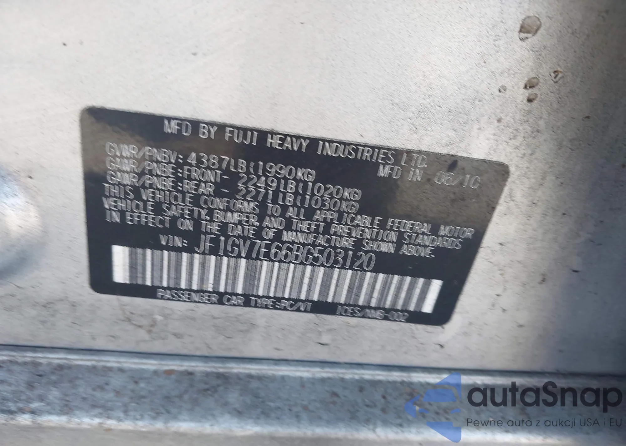 • VIN JF1GV7E66BG503120