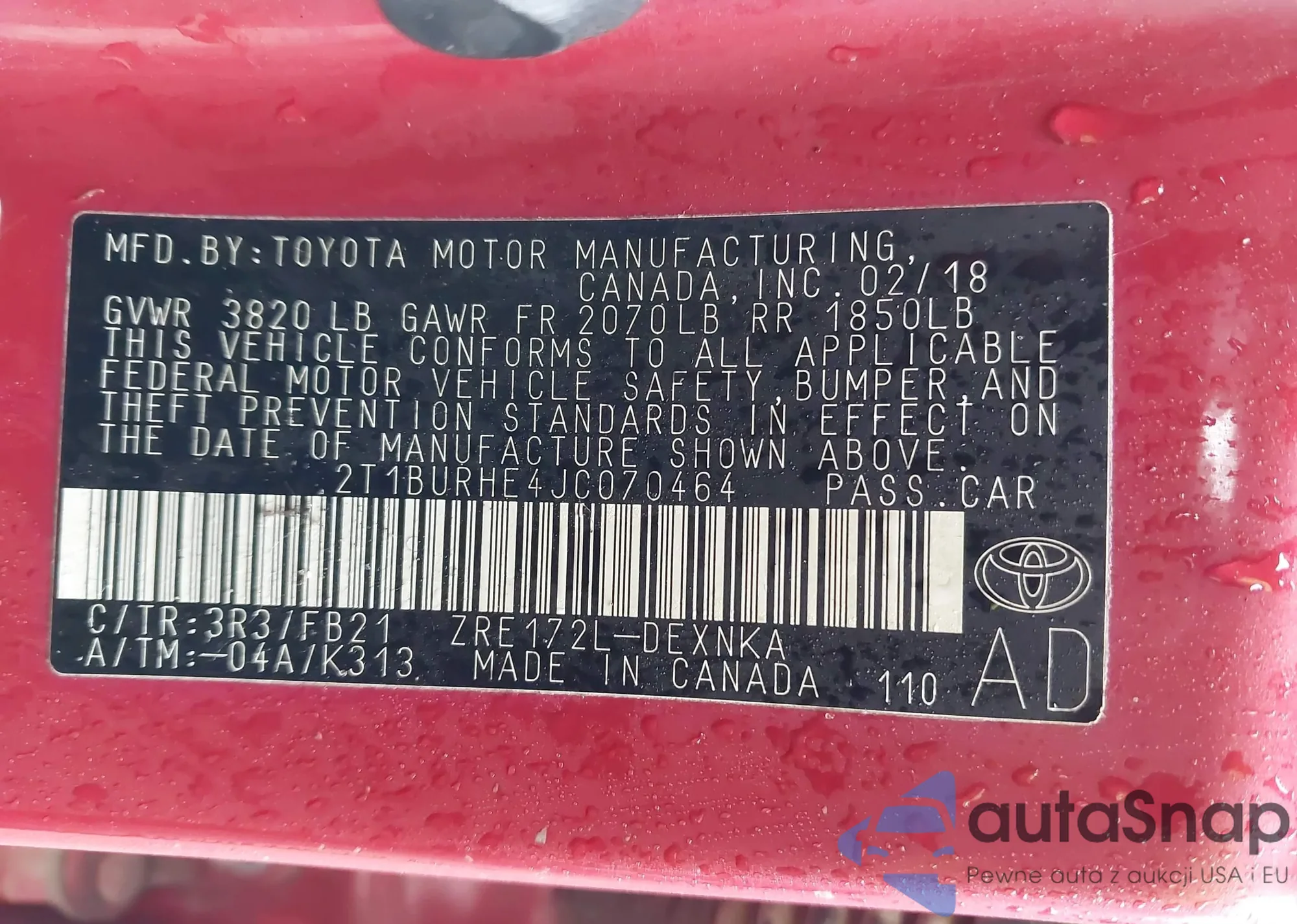 • VIN 2T1BURHE4JC070464