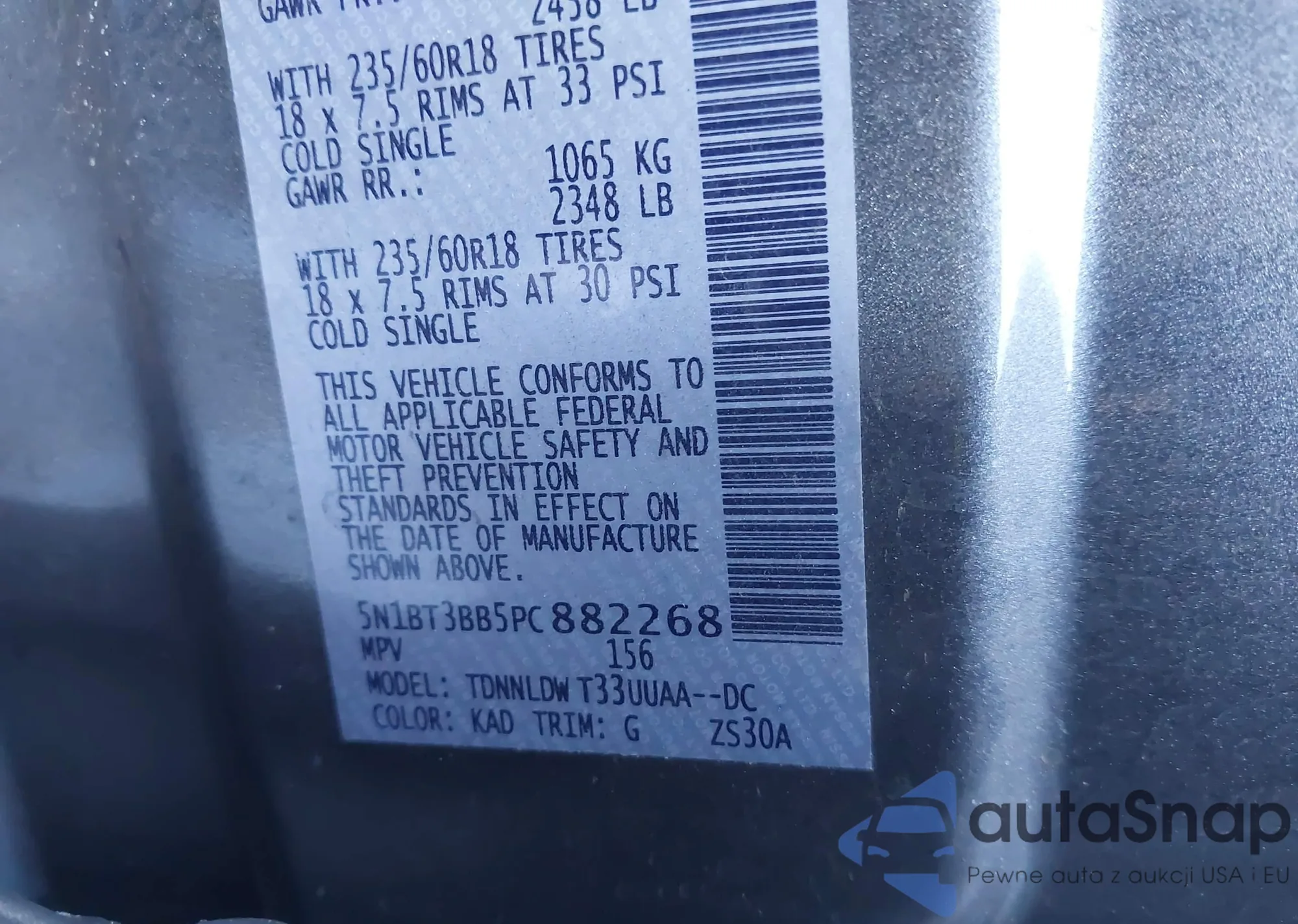 LOT: 43972729 VIN: 5N1BT3BB5PC882268