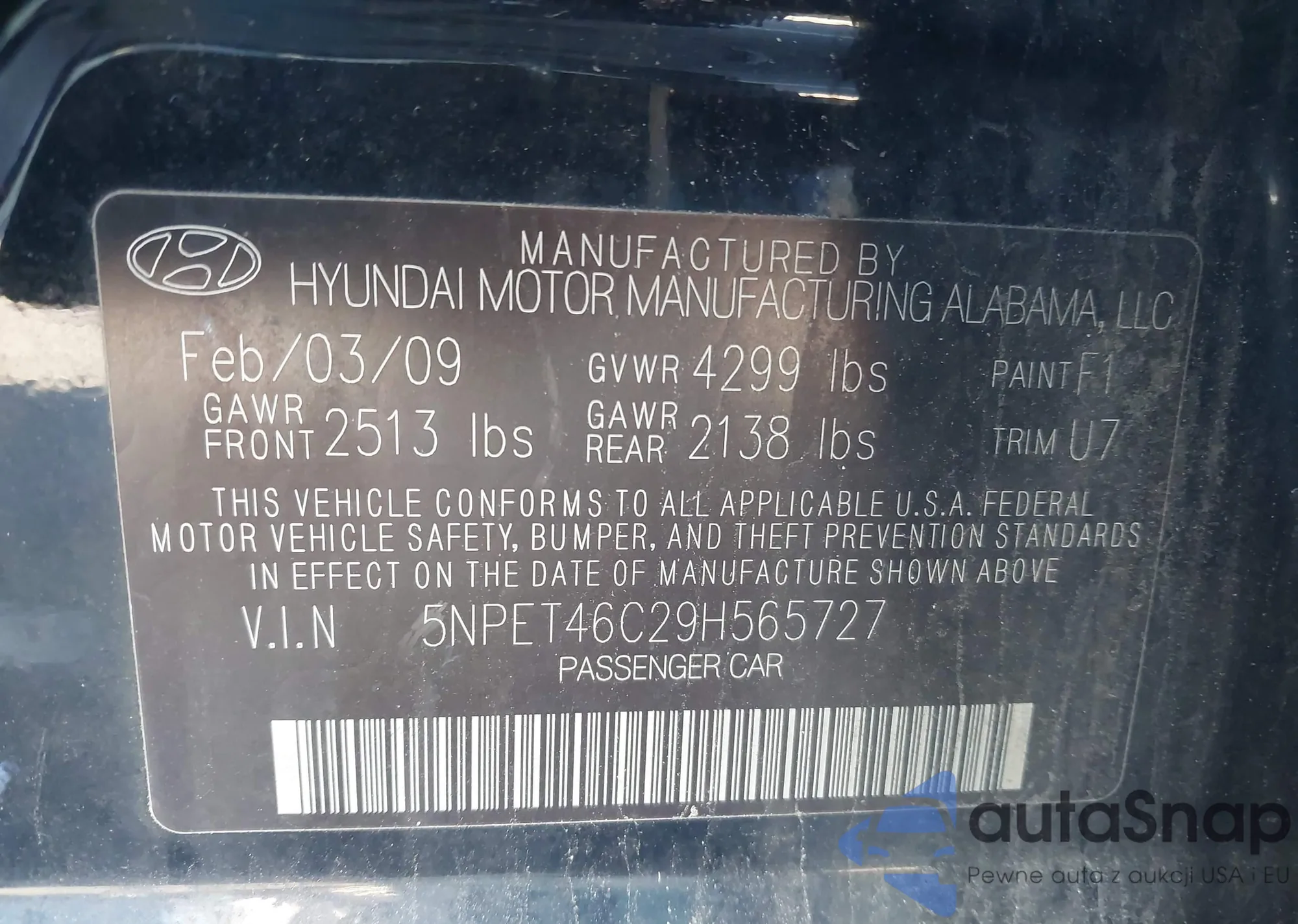 • VIN 5NPET46C29H565727