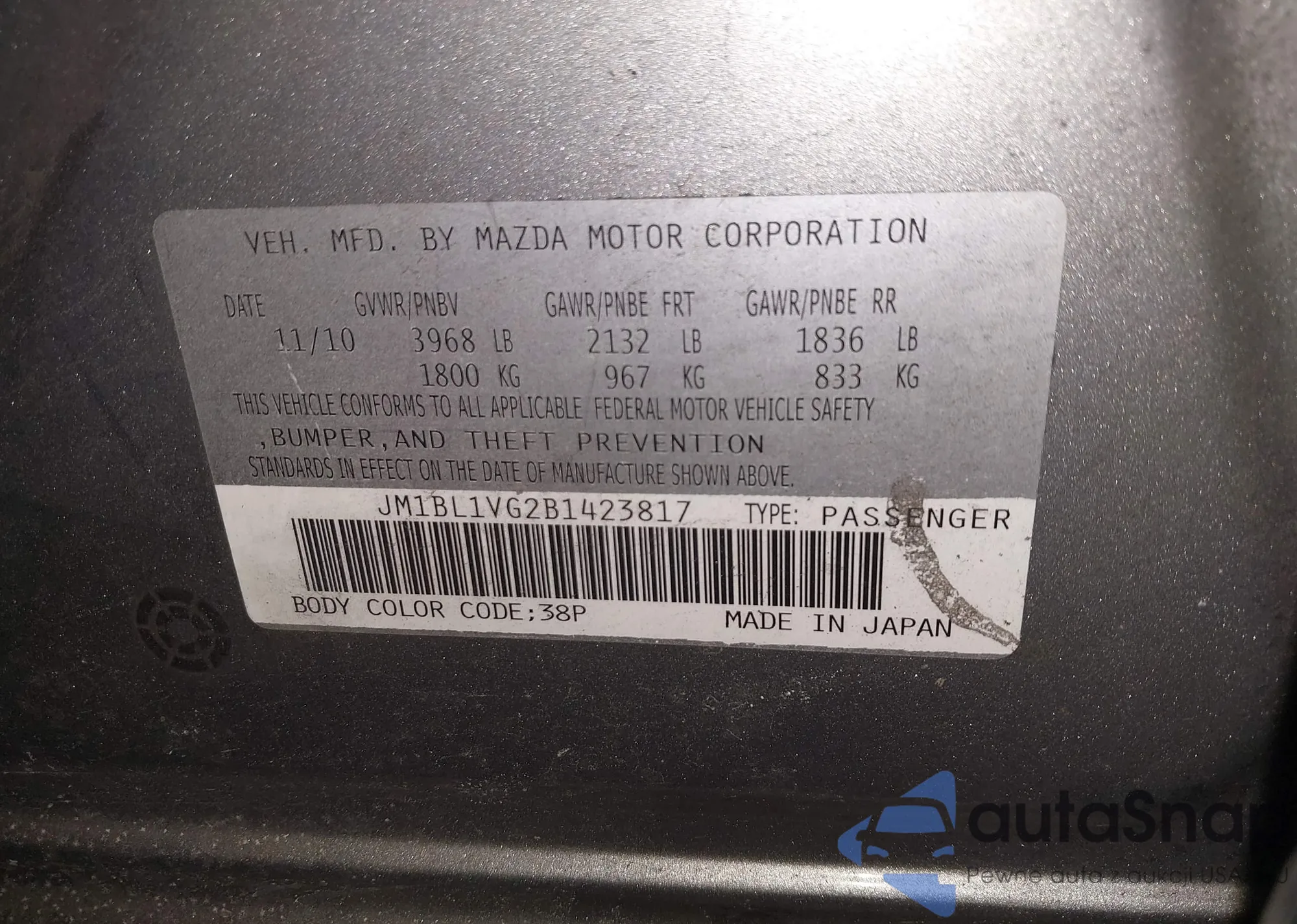 • VIN JTMZD33V966012657