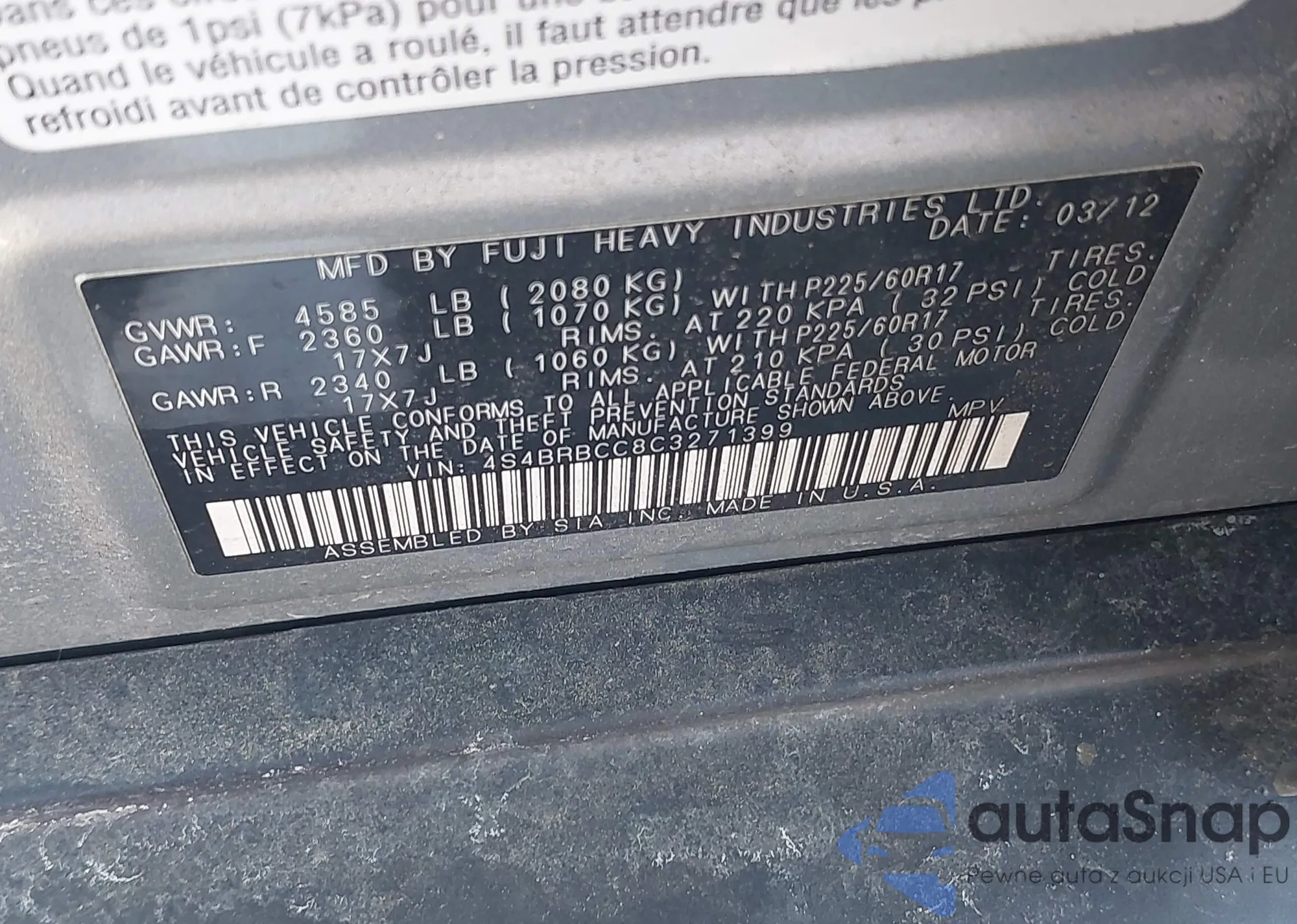 • VIN 4S4BRBCC8C3271399