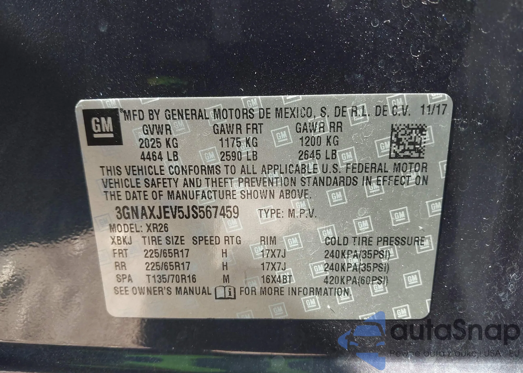 • VIN 3GNAXJEV5JS567459