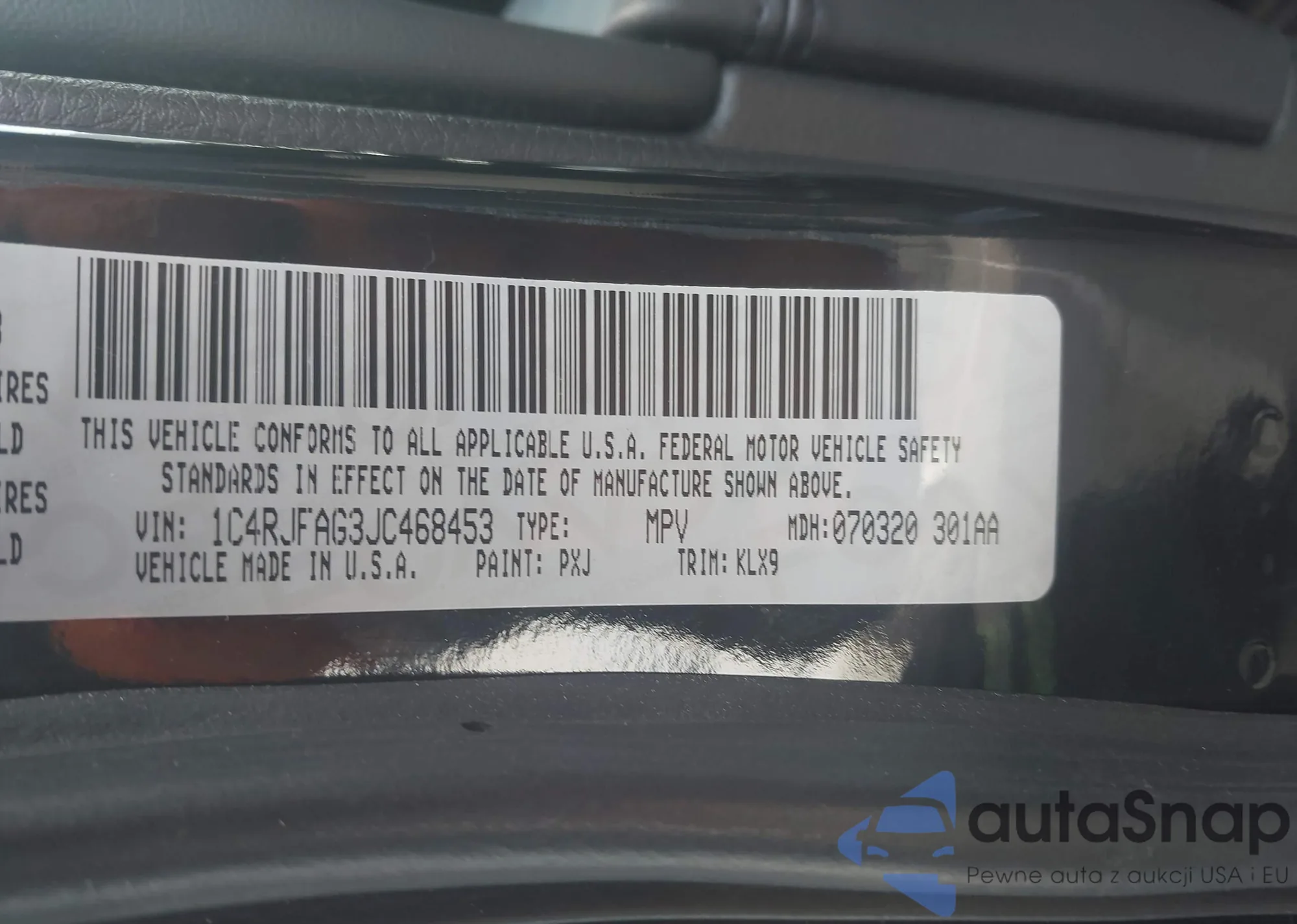 • VIN 1C4RJFAG3JC468453