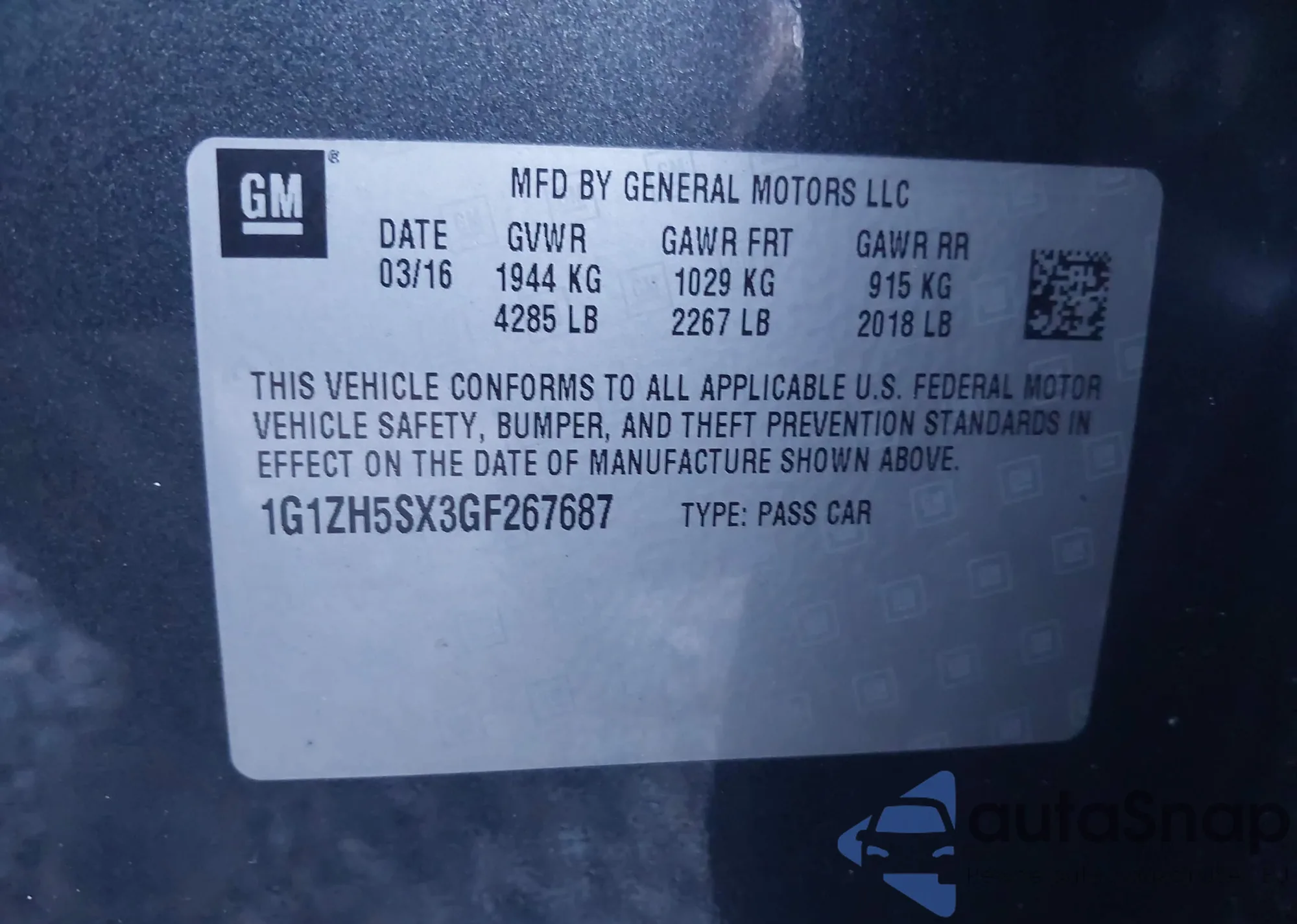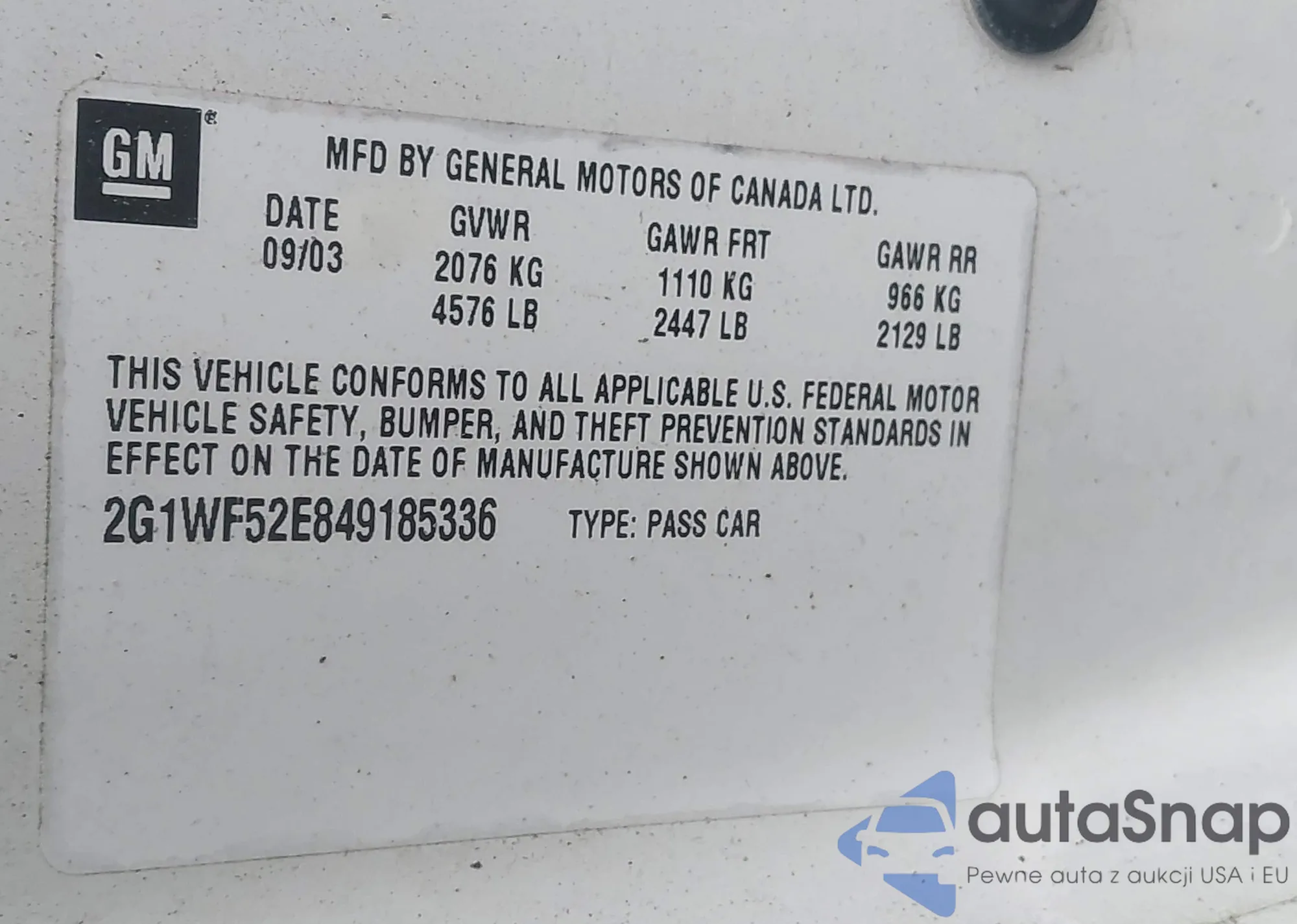 • VIN 2G1FB3D37E9265563