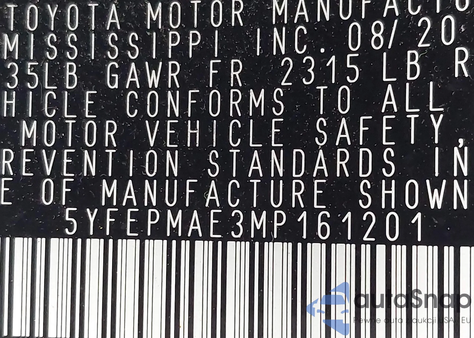 • VIN 5YFEPMAE3MP161201