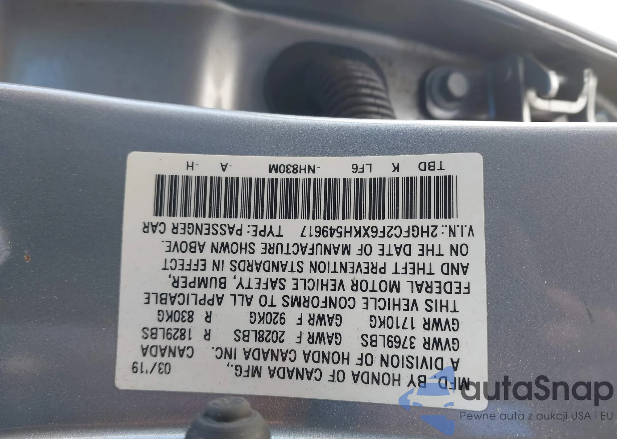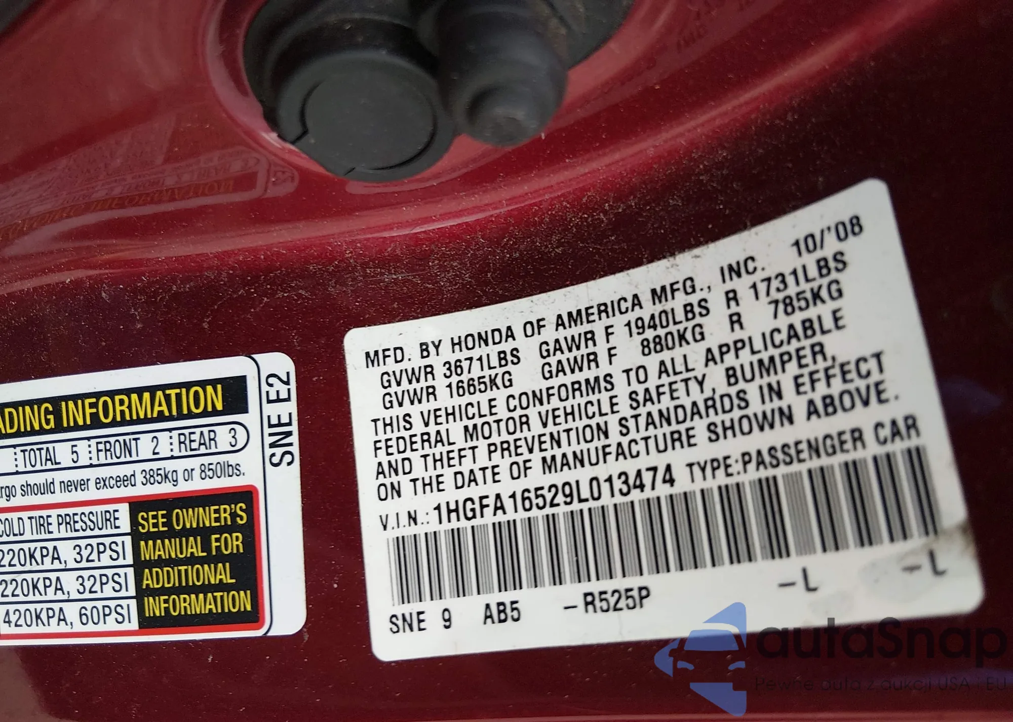 LOT: 44324309 VIN: 1HGFA16529L013474