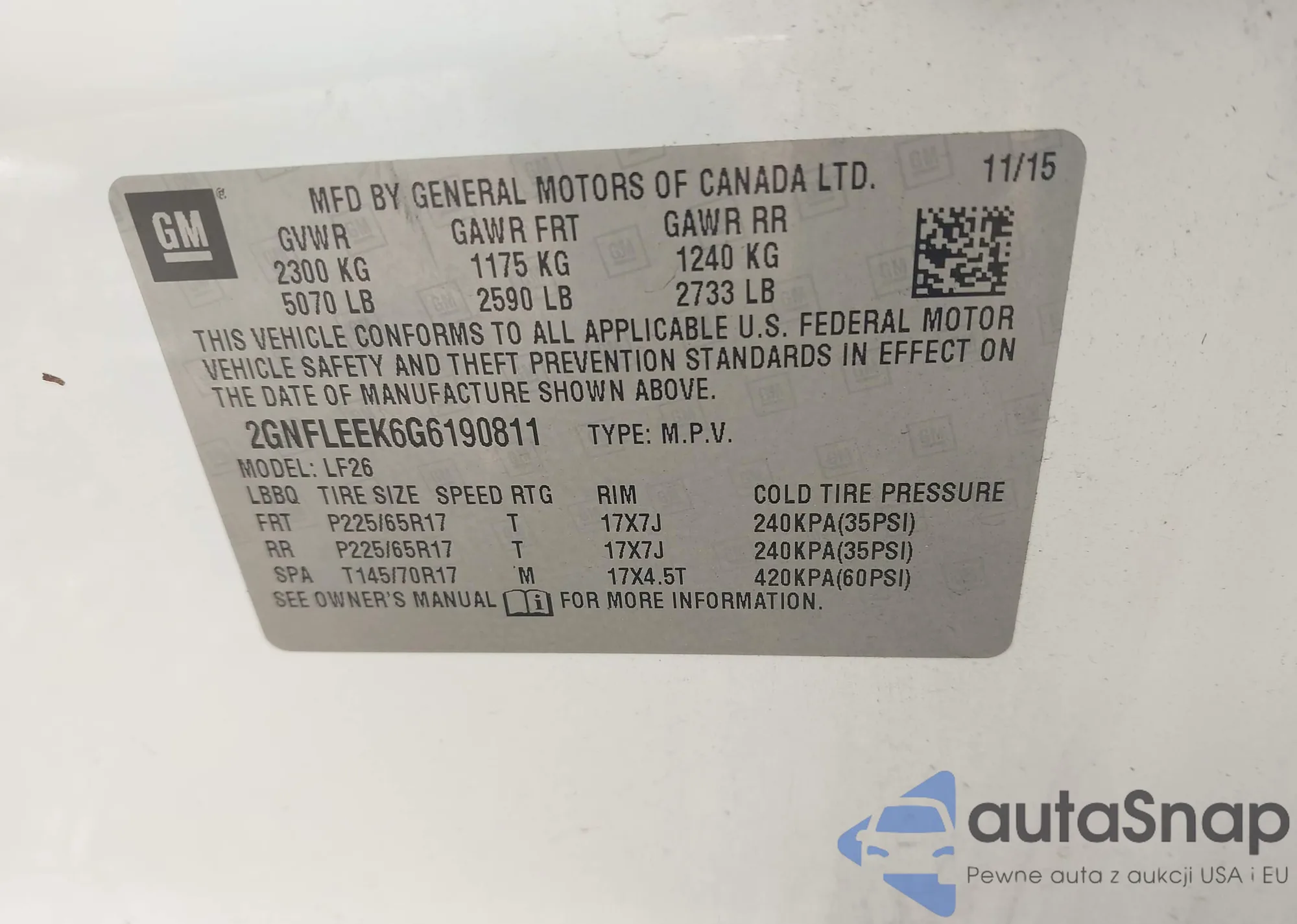 • VIN 2GNFLEEK6G6190811
