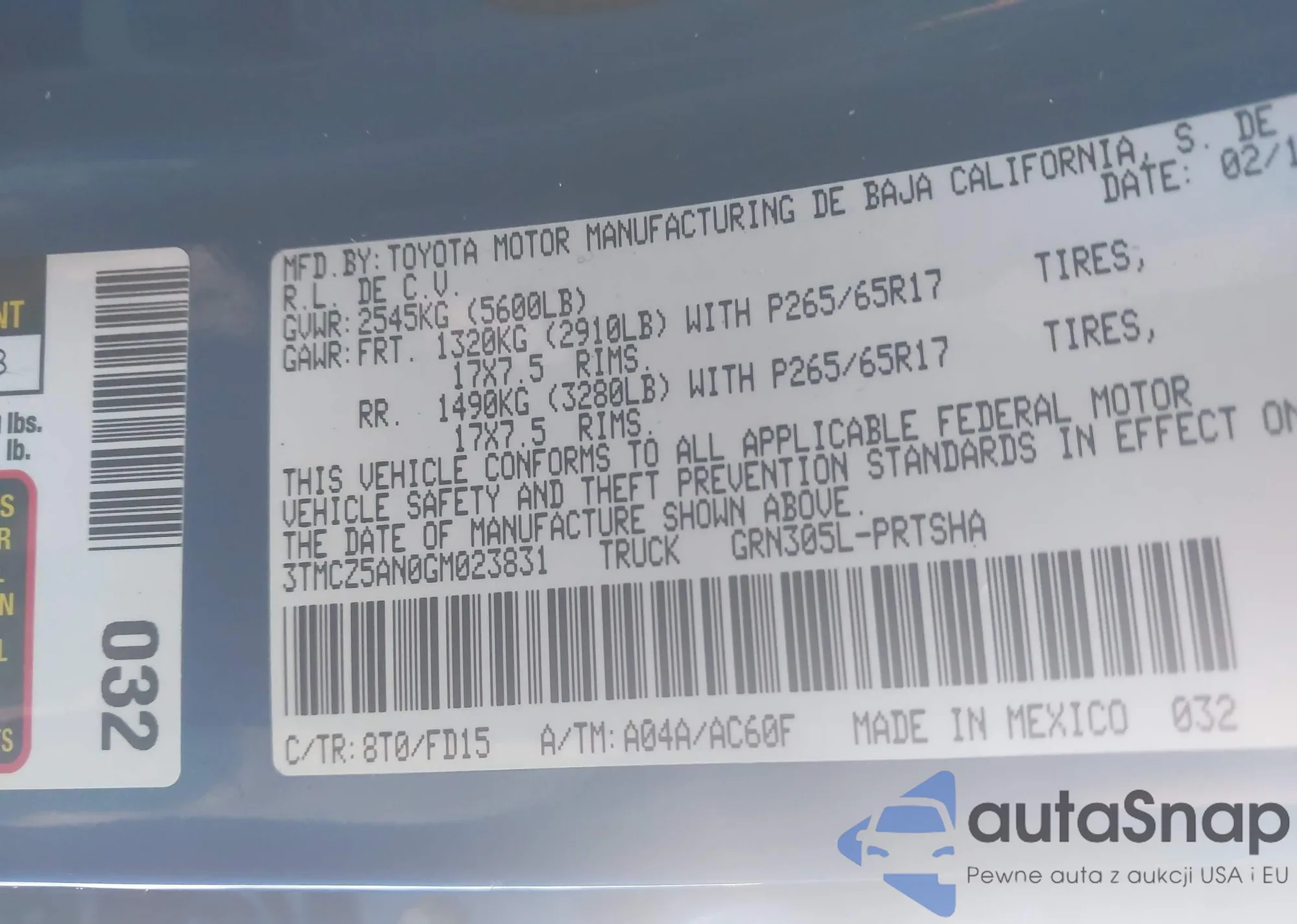 • VIN 3TMCZ5AN0GM023831
