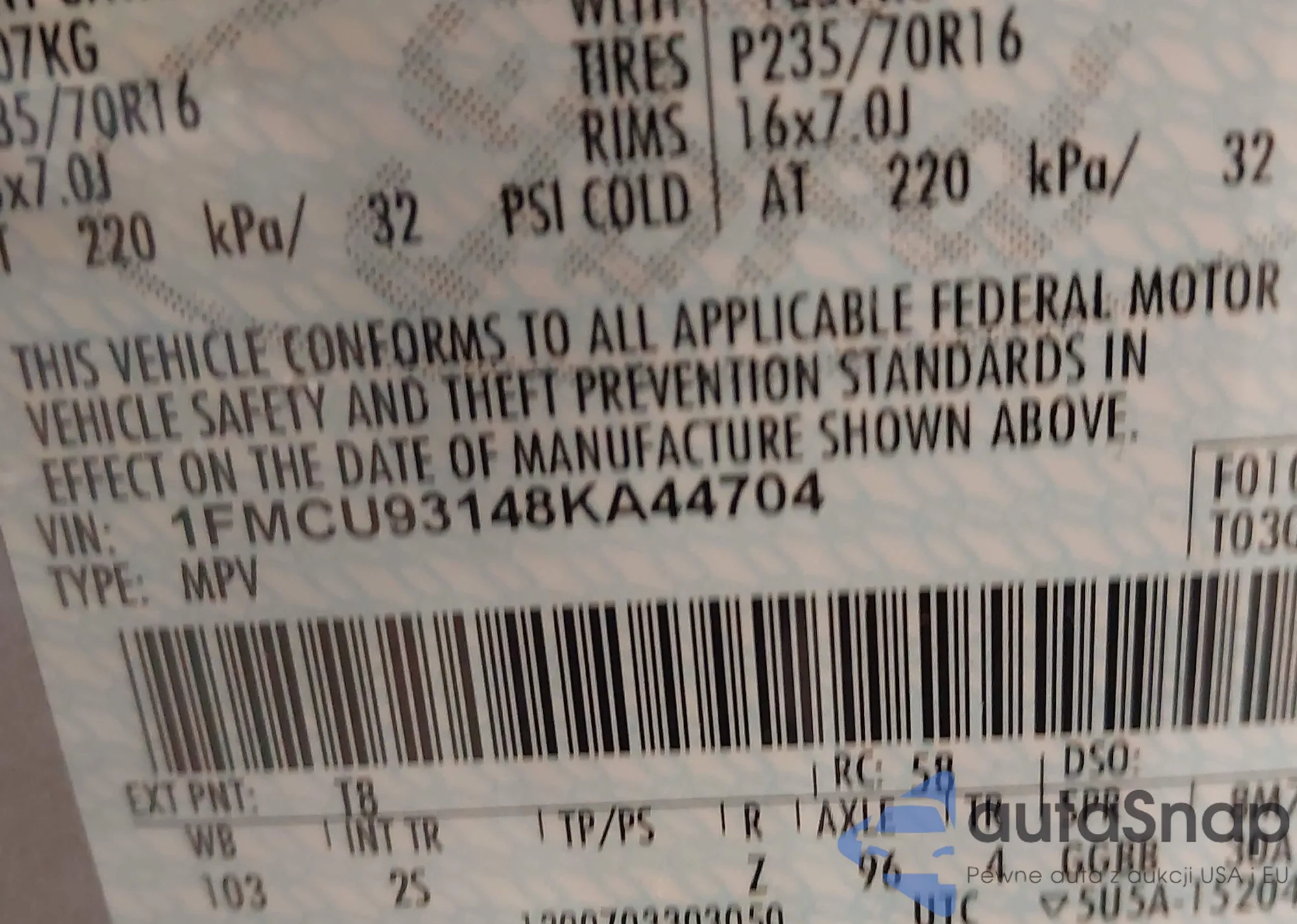 LOT: 44485086 VIN: 1FMCU93148KA44704