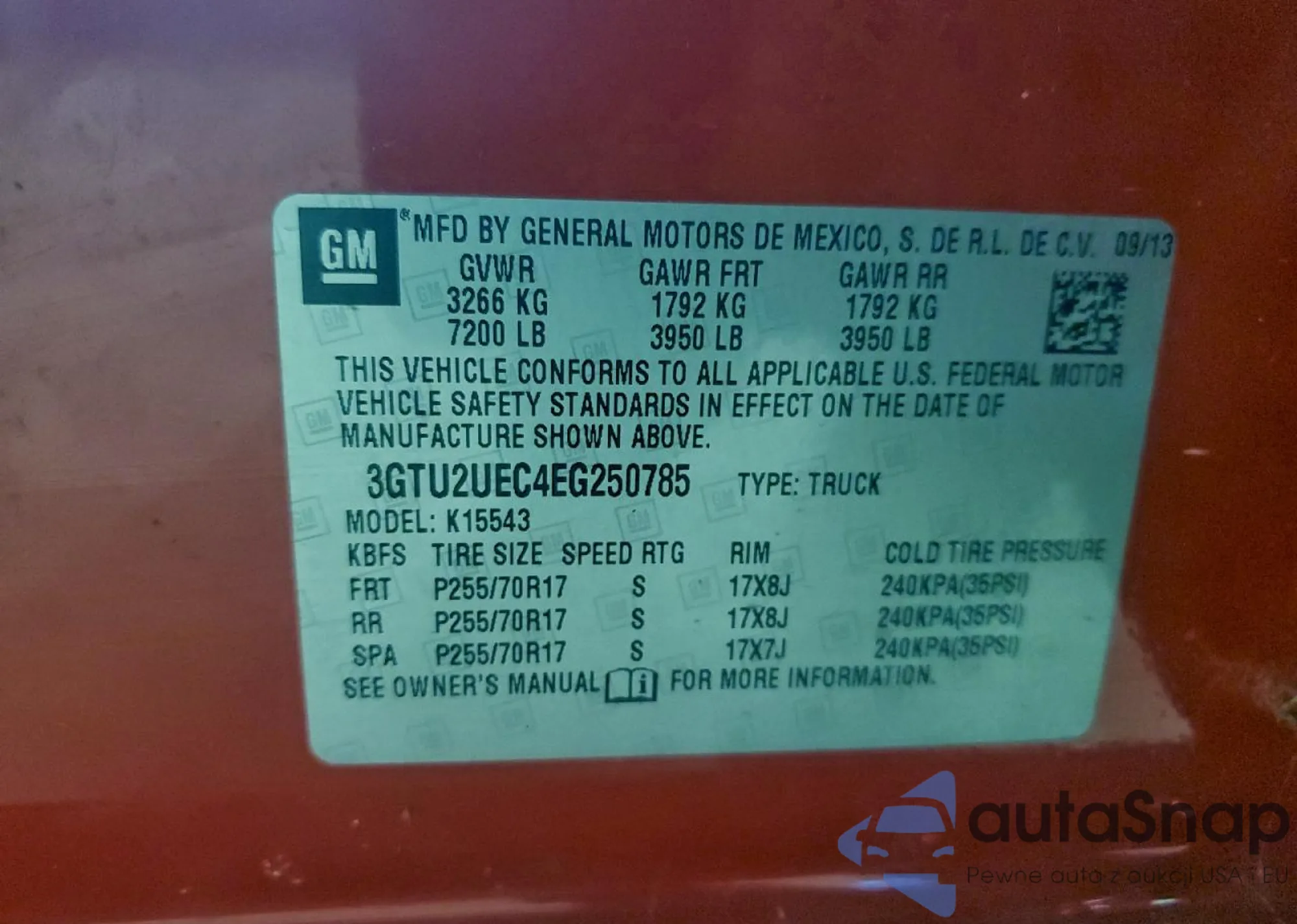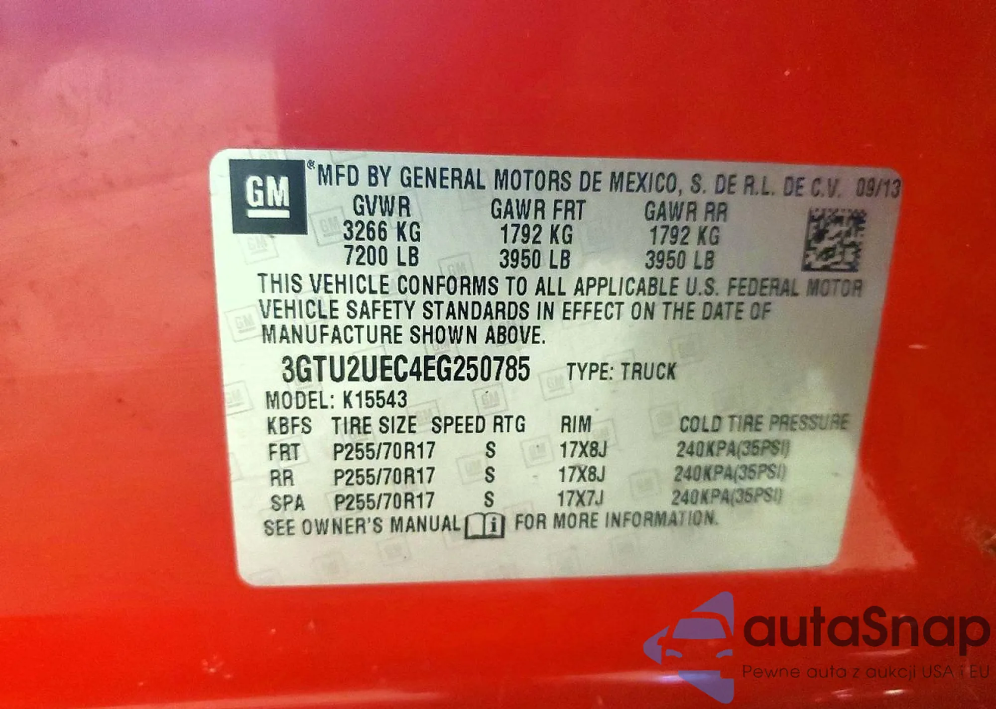 • VIN 3GTU2UEC4EG250785
