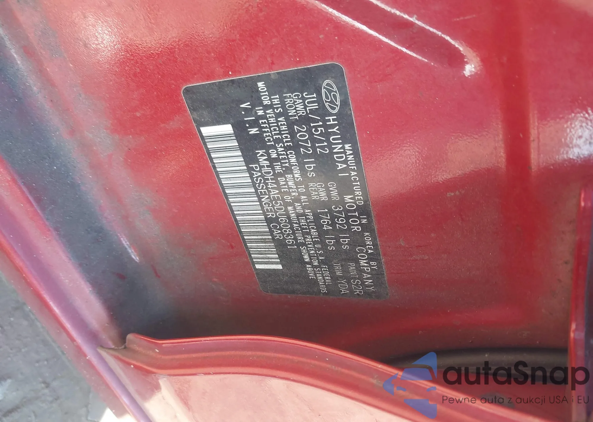 LOT: 43936801 VIN: KMHDH4AE5DU608361