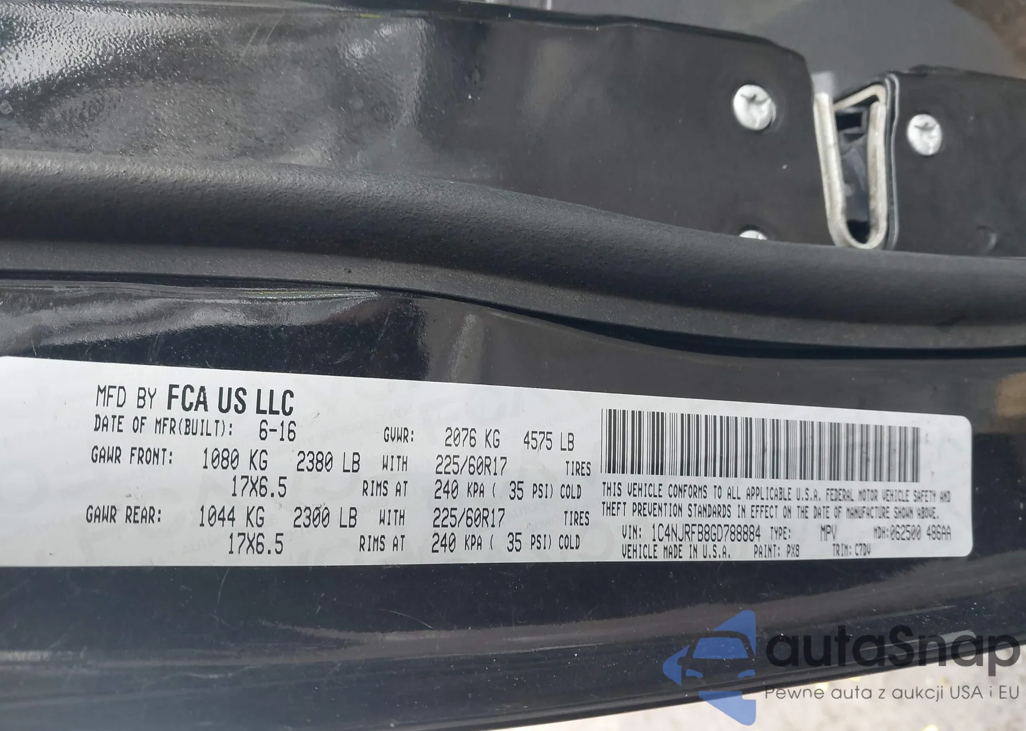 • VIN 5J6RM4H5XDL050681