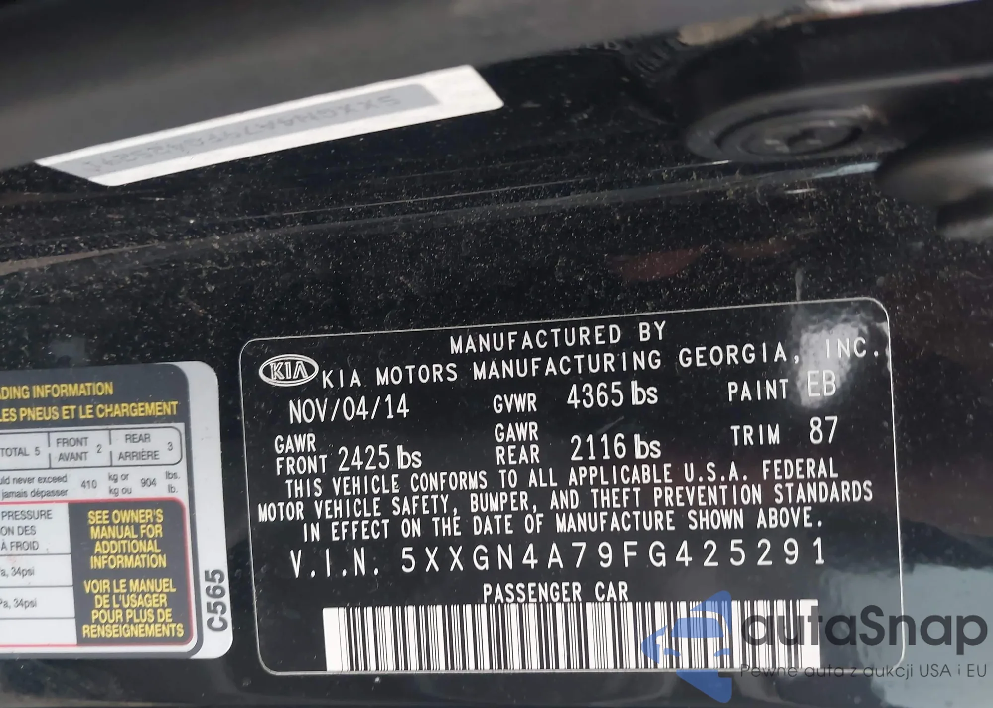 LOT: 44345991 VIN: 5XXGR4A64FG453639