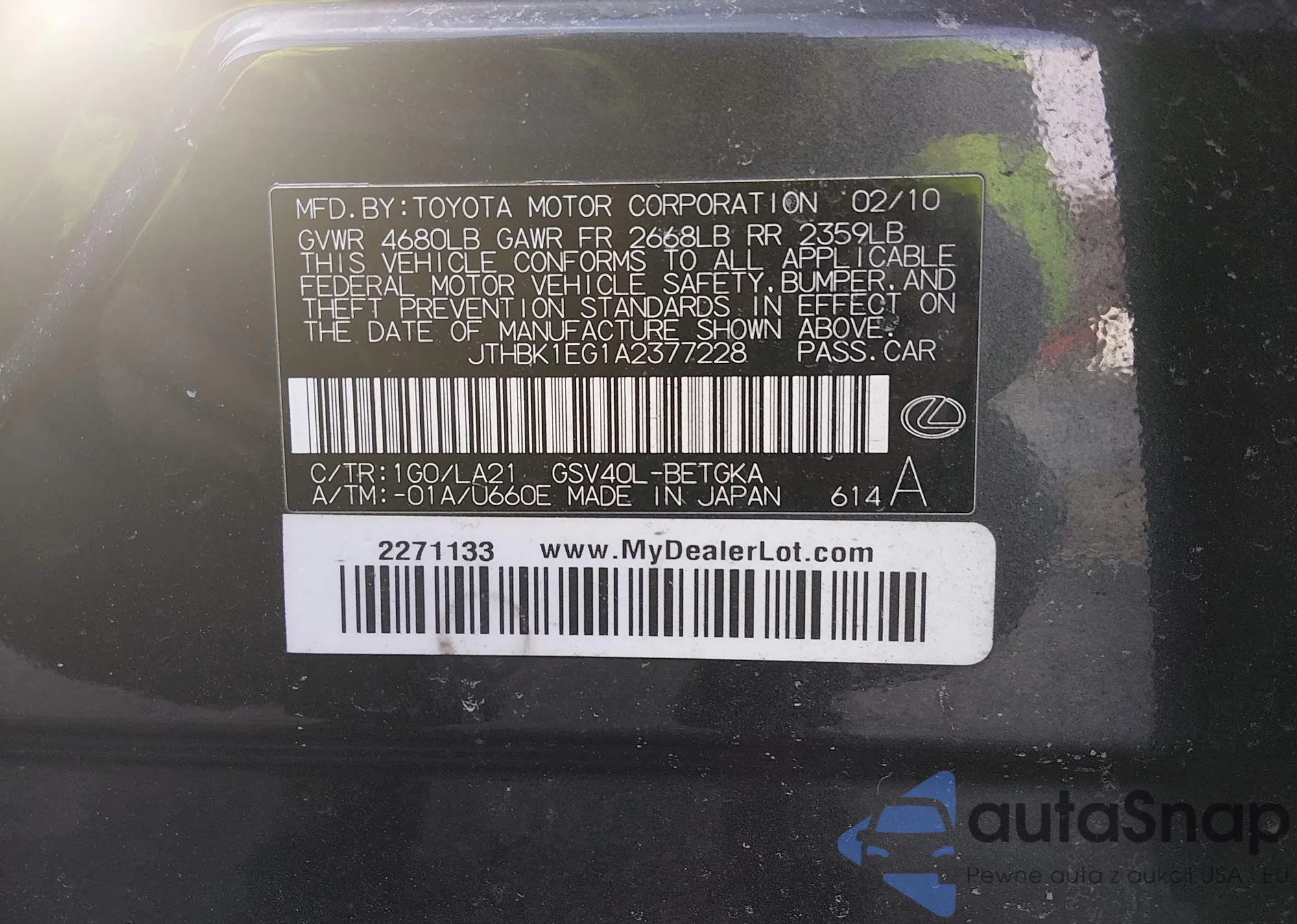 • VIN JTHBK1EG1A2377228