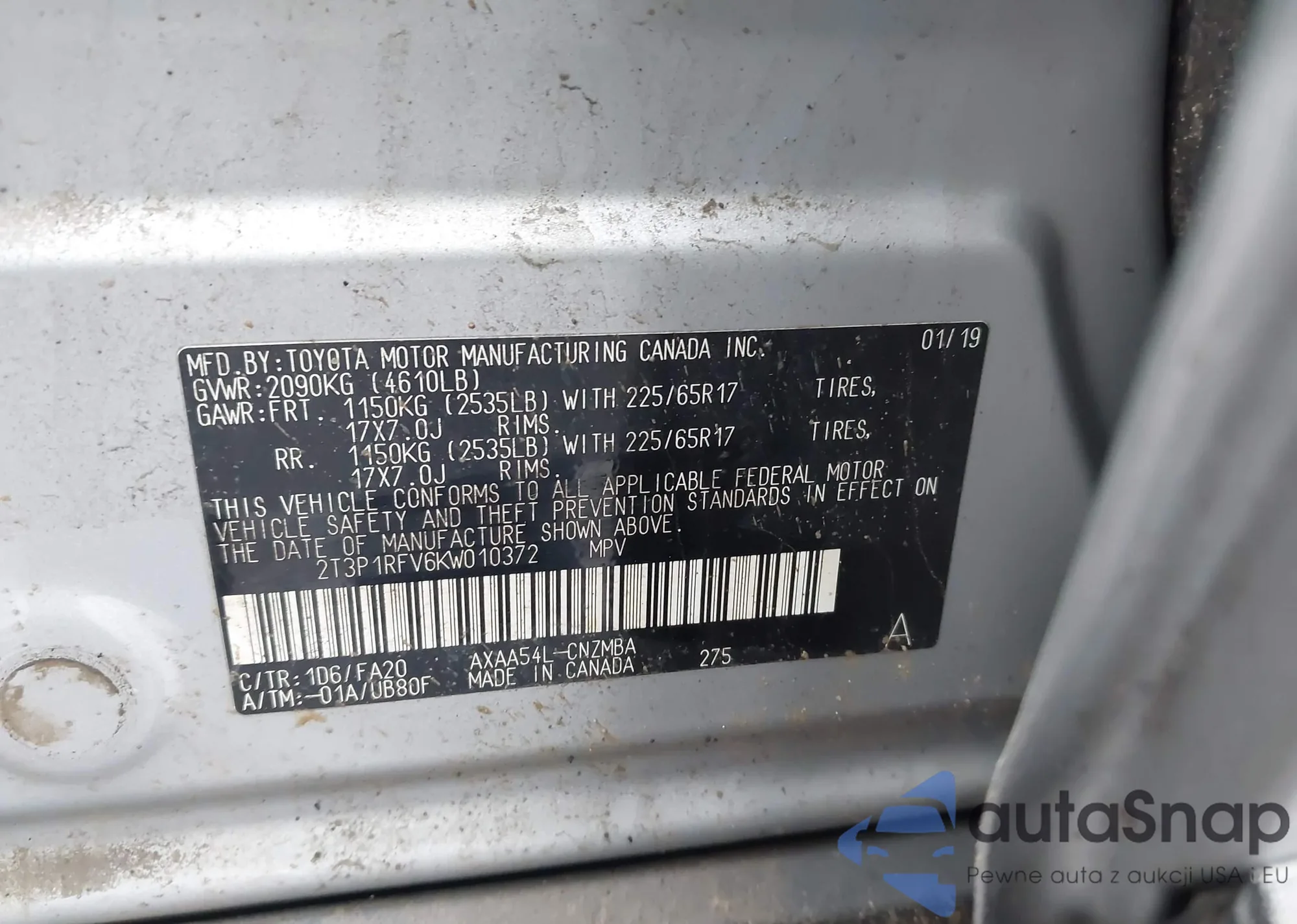 • VIN 2T3P1RFV6KW010372