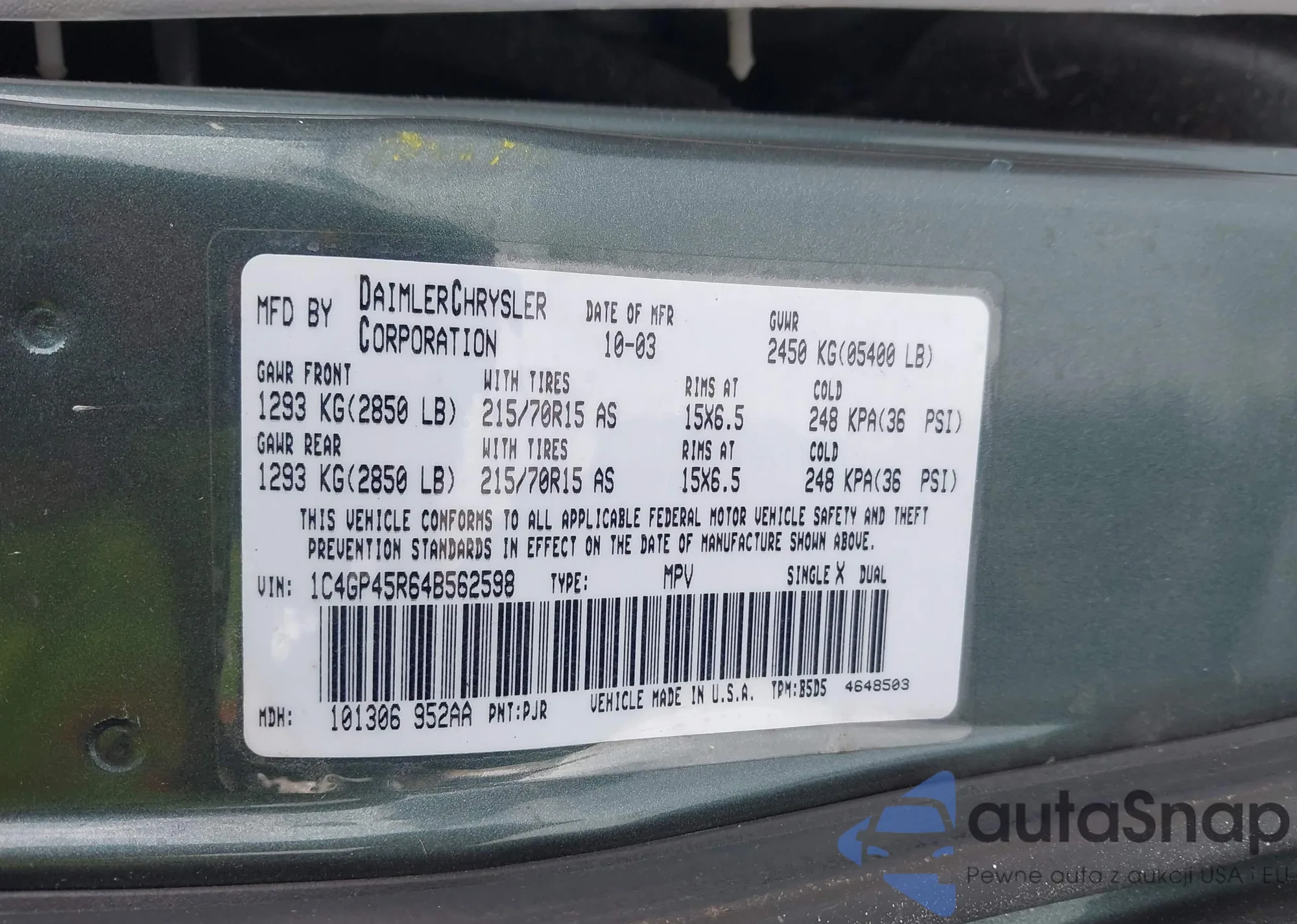 • VIN 1C4GP45R64B562598