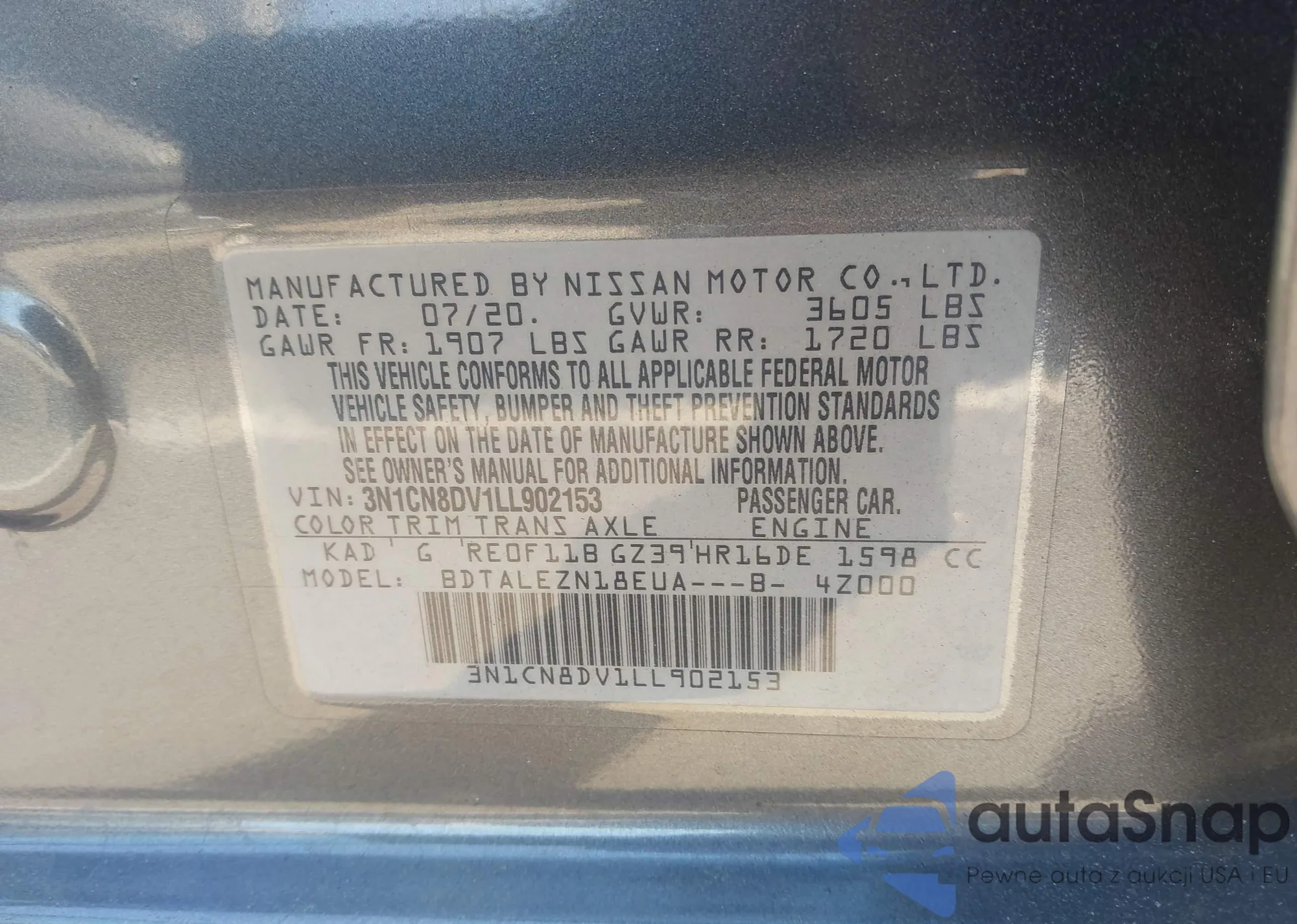 LOT: 44347965 VIN: 3N1CN8DV1LL902153